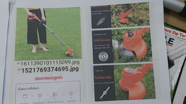 นางน้อย ให้การว่า ตนเข้าไปดูเฟซบุ๊ก ได้มีการประกาศลงขายเครื่องตัดหญ้าแบบไร้สาย โดยมีการบันทึกวีดีโอโฆษณาสินค้า เอาไว้ ซึ่งมีการสาธิต ในโฆษณา สามารถตัดกิ่งไม้ได้ ตัดหญ้าได้ มีขนาดใหญ่แข็งแรง อีกทั้งยังมีรูปของดาราชายชื่อดัง เป็นนายแบบด้วย โฆษณาขายเครื่องตัดหญ้าไร้สาย ใช้แบตเตอรี่ จากประเทศเยอรมัน มีของแถมมากมาย ในราคาเครื่องละ1,390 บาท และ มีการจัดโปรโมชั่นซื้อ1เครื่องแถม1เครื่อง ในราคา1,890บาท เก็บเงินปลายทาง