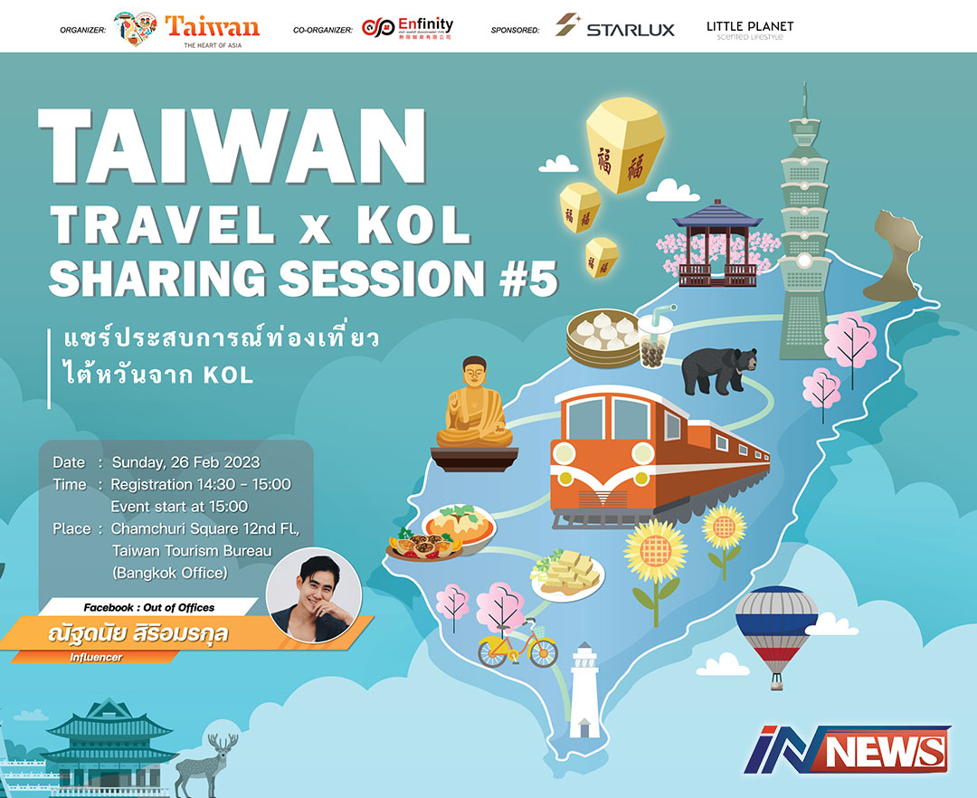 สำนักงานการท่องเที่ยวไต้หวัน จัดงาน “แชร์ประสบการณ์ท่องเที่ยวไต้หวันจาก KOL” โดยจับมือร่วมกับ KOL ทั้งหมด 6 ท่าน มาร่วมพูดคุยแชร์ประสบการณ์ และแหล่งท่องเที่ยวต่างๆ ในไต้หวัน พร้อมพาร์ทเนอร์ในงาน อาทิ สายการบิน Starlux โดยกิจกรรมครั้งนี้จัดขึ้นเป็นครั้งที่ 5 ซึ่ง KOL ที่จะมาในครั้งนี้ ได้แก่ “คุณณัฐดนัย สิริอมรกุล” Blogger สายท่องเที่ยวจาก Facebook Page : Out of offices ที่เดินทางมาแล้วหลายประเทศทั่วโลก ครั้งนี้เขาจะมาร่วมแชร์ประสบการณ์สุดสนุกจากการเดินทางท่องเที่ยวในไต้หวัน บอกเล่าจุดท่องเที่ยวที่น่าสนใจ เผยทริคการเดินทางต่างๆ ที่จะทำให้การท่องเที่ยวไต้หวันครั้งนี้สนุกและประทับใจไม่รู้ลืม ซึ่งการเดินทางครั้งนี้จะช่วยเปิดประสบการณ์ เติมPassion เพิ่มความสุข ให้พร้อมกลับมาทำงานและใช้ชีวิตได้อย่างเต็มที่ โดยงานจะจัดขึ้นใน วันอาทิตย์ที่ 26 กุมภาพันธ์ นี้ ตั้งแต่เวลา 15:00 น. เป็นต้นไป ณ สำนักงานการท่องเที่ยวไต้หวัน ชั้น 12 ตึกจามจุรีสแควร์