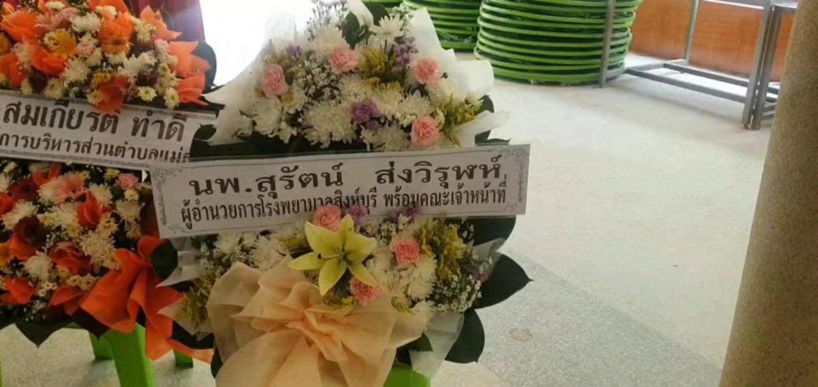 สำหรับทีมโรงพยาบาลสิงห์บุรี นอกจากจะได้นำพวงหรีดมาให้และแสดงความเสียใจแล้ว ยังได้นำเอกสารให้รับเงินเยียวยามาให้เซ็นและนำไปยื่นที่โรงพยาบาลสิงห์บุรี แล้วทางโรงพยาบาลจะส่งต่อไปให้ทางสาธารณะสุข จากนั้นสาธารณสุขจะส่งเรื่องไปยัง สปสช.เพื่อขอรับเงินเยียวยา และคืนนี้ทางโรงพยาบาลสิงห์บุรี จะมาเป็นเจ้าภาพสวดอภิธรรมศพ ส่วนการชี้แจงรายละเอียดทั้งหมดทางเจ้าหน้าที่โรงพยาบาลสิงห์บุรีให้รอผู้อำนวยการโรงพยาบาลสิงห์บุรีแถลงข่าวต่อไป