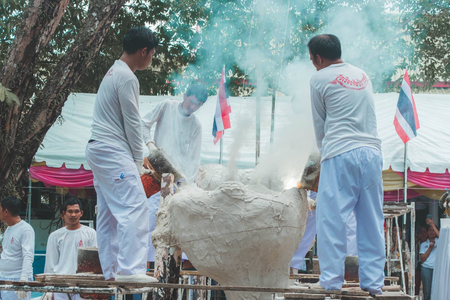นครนายก - ที่บริเวณลานบุญมณฑลพิธีวัดเขาชะโงก วัดเขาชะโงก จัดพิธีเททอง หล่อองค์สมเด็จพระเจ้าตากสินมหาราช ทรงบัลลังก์ และบรมครูปู่ชีวกโกมารภัจจ์