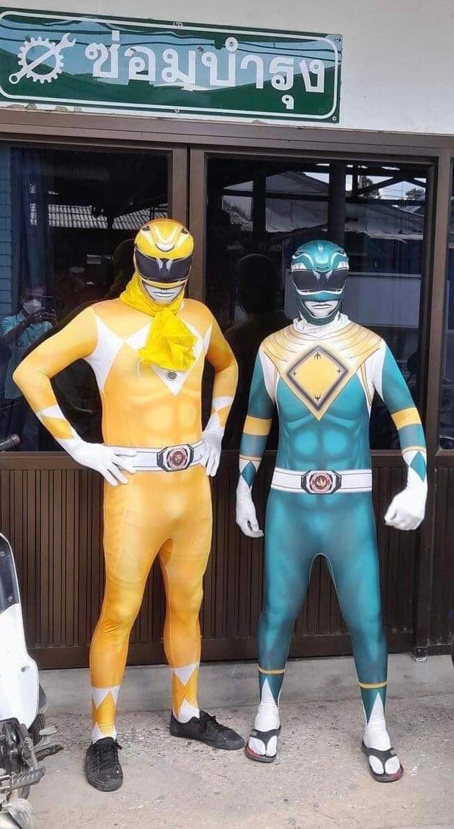 นายวรานนท์ (บอย) ภูมมาลา อายุ40ปี ทำงาน รปภ โรงพยาบาลกำแพงแสน หนึ่งในผู้ที่สวมชุดมาร่วมงาน บอกว่า เมื่อก่อนตนเองทำงานดับเพลิงเทศบาลกำแพงแสน ซึ่งอดีตเคยแต่งตัวเป็นสไปรเดอร์แมน ฉีดพ่นนำ้ล้างถนนในตลาดกำแพงแสนลดค่าฝุ่น PM 2.5 มาแล้วและได้ลาออกมาจากที่เก่าและนายภูชนะ (ไก่) ตาดทองไทร อายุ 49 ปีรปภ โรงพยาบาลกำแพงแสนสวมชุดสีเขียวต้องการให้มีบรรยากาศการรับนาคมีสีสันสร้างความสนุกสนานคลายเครียดให้กับคนที่มาร่วมรับนาคและชาวบ้านในช่วงอากาศร้อนและสร้างความสนุกก่อนที่นาคทั้ง 29 รูปจะได้รับการอุปสมบทในช่วงเช้าวันนี้ด้วย