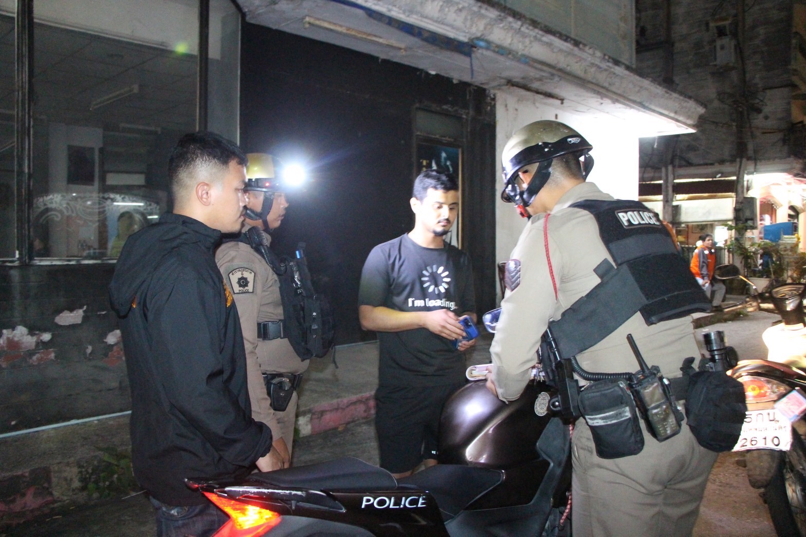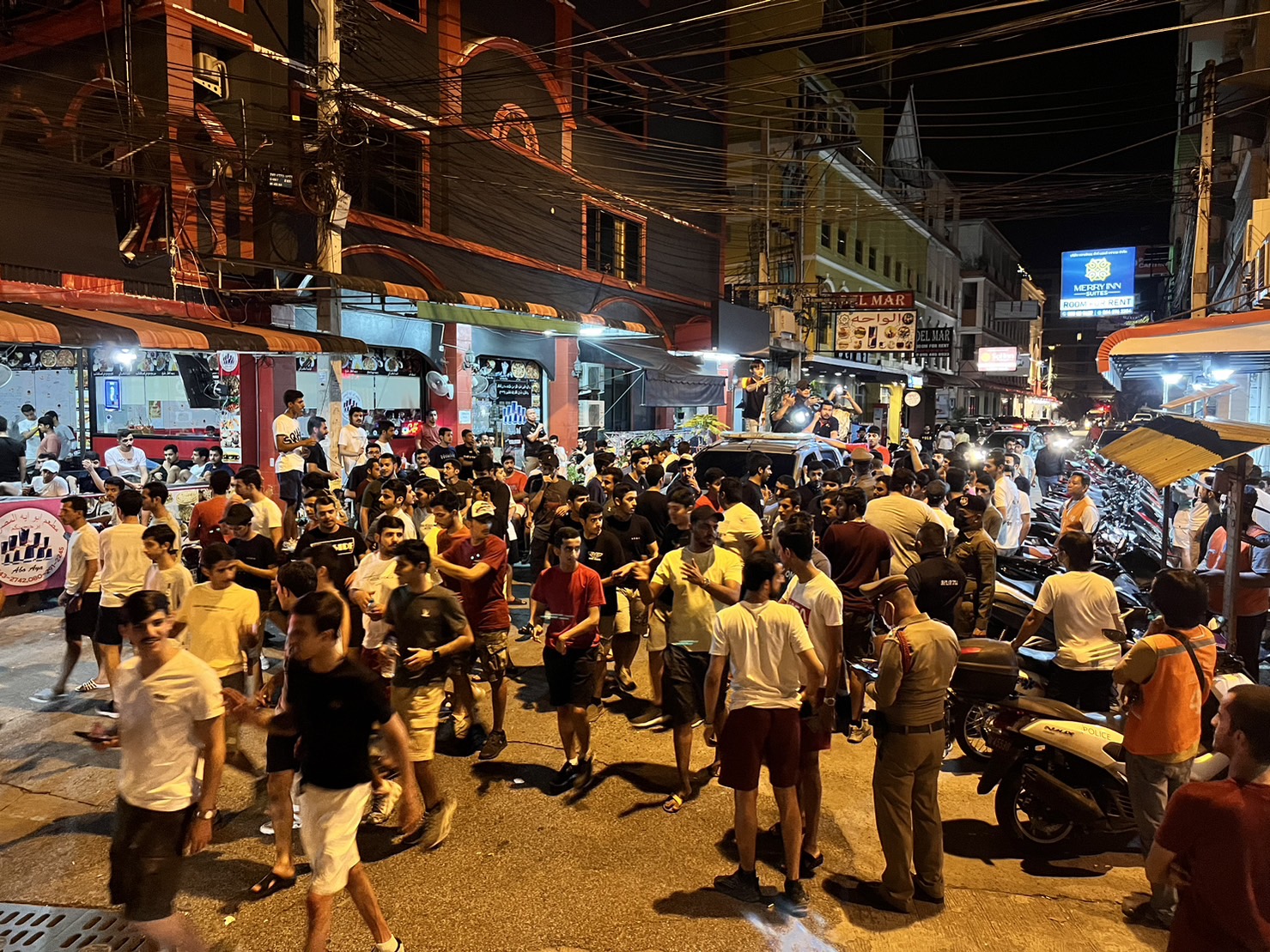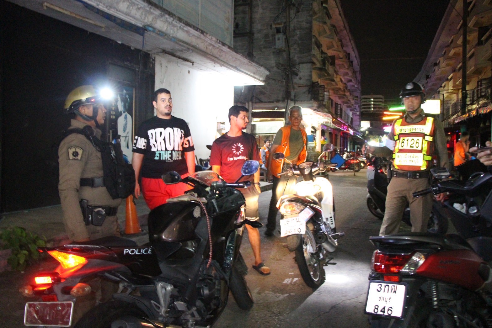 ขณะที่ระหว่างการตรวจสอบนั้นกลุ่มวัยรุ่นชาวต่างชาติ ซึ่งส่วนใหญ่เป็นกลุ่มประเทศ อาหรับ โดยเฉพาะชาวคูเวต กว่าร้อยคน ซึ่งใช้บริการที่พักและร้านอาหารอยู่บริเวณใกล้ ต่างพากันออกมายืนมุงดูการปฏิบัติหน้าที่ ซึ่งทางเจ้าหน้าที่ตำรวจจึงให้ลามแปลภาษา ใช้เครื่องขยายเสียงสื่อสารประชาสัมพันธ์ ให้กับกลุ่มนักท่องเที่ยว ในเรื่องของการขับขี่รถจยย.เพื่อความปลอดภัยของตัวเองและผู้อื่น ซึ่งกลุ่มนักท่องเที่ยวก็เข้าใจปรบมือให้กับเจ้าหน้าที่ตำรวจก่อนจะแยกย้ายกันไป