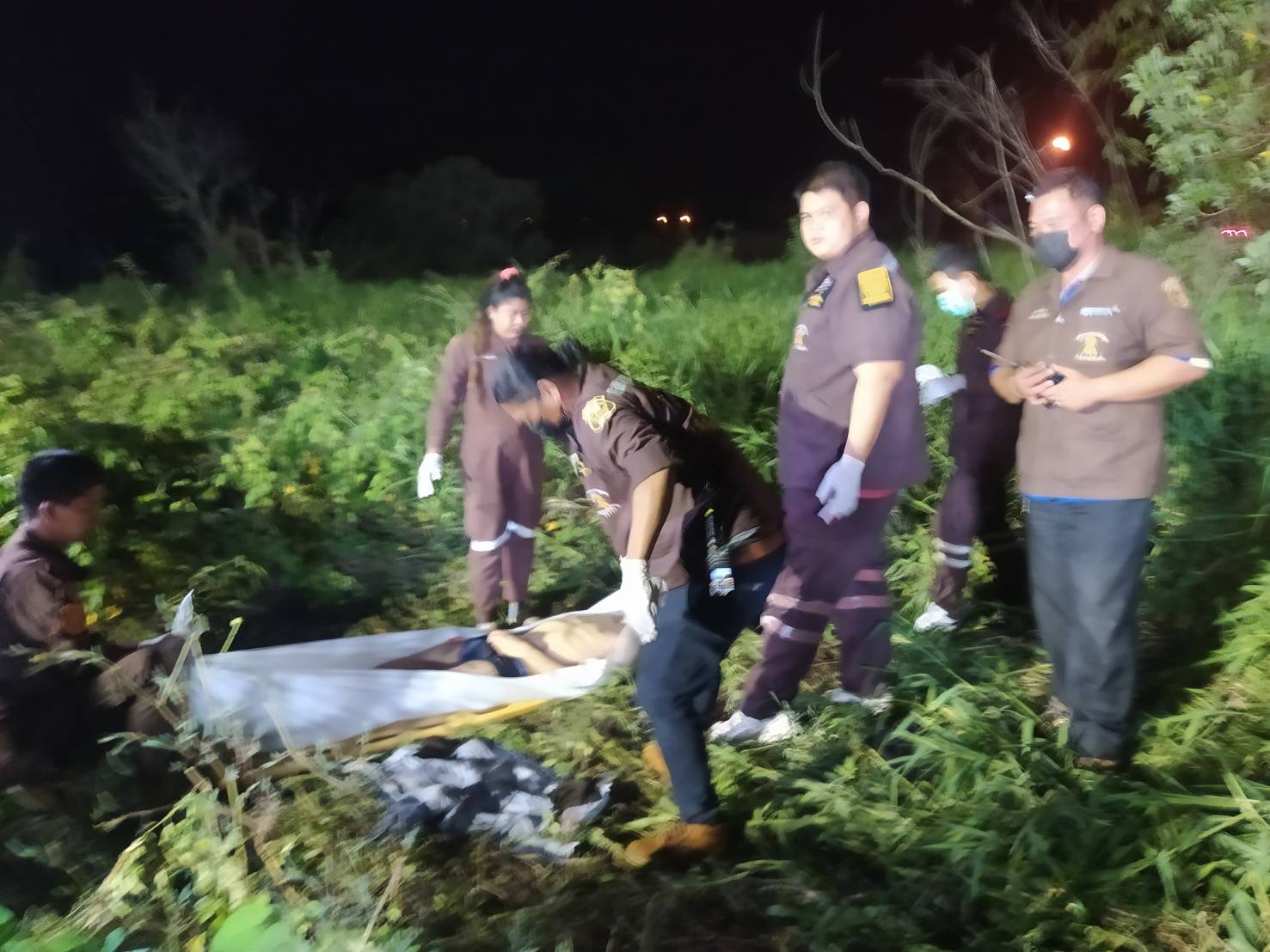 ที่เกิดเหตุ ริมถนน พบรถเก๋งฮอนด้าแจ๊ส สีดำ สภาพ พังยับทั้งคันตกอยู่ข้างทาง ล้อหน้าเหลือแต่ล้อแม็ก วงล้อแม็กหน้าซ้ายมีรอยกระสุน 2 รู และตรวจสอบภายในรถพบอาวุธปืนสั้นขนาด .38 1กระบอก ระเบิดควัน 1ลูก ห่างออกไปจากรถผู้ตาย 300 เมตรซึ่งเป็นป่าหญ้าเนื้อที่เกือบ 10 ไร่ ต้องเดินเท้าจากถนนเข้าไปประมาณ 100 เมตร พบศพนายศรเทพ รสชสาสน์ อายุ 26 ปี สภาพศพนอนคว่ำหน้ามีอาวุธปืนขนาด 9 มม.ที่มือขวาถูกยิงจนกระสุนหมดแมกกาซีน และปลอกกระสุนตกอยู่จำนวนมาก จาการตรวจสอบศพเบื้องต้นพบว่ามีบาดแผลถูกยิงที่ ใบหน้าคอ 3 นัด แขน 1 นัด ขาขวา 1 นัด ขาซ้าย 1 นัด นอกจากนี้ยังมีเจ้าหน้าที่ตำรวจถูกยิงได้รับบาดเจ็บที่ขา 2 นาย