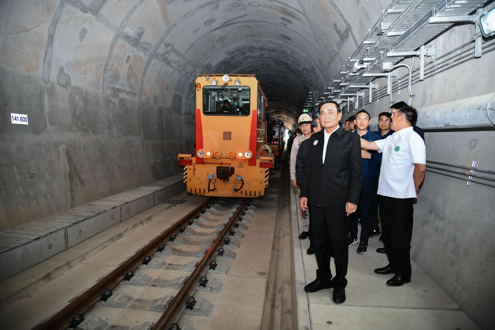 สำหรับการตรวจเยี่ยมโครงข่ายคมนาคมระบบรางครั้งนี้ จุดแรก นายกรัฐมนตรีและคณะ ได้ตรวจติดตามความก้าวหน้างานอุโมงค์รถไฟผาเสด็จ (อุโมงค์ที่ 1) ช่วงมาบกะเบา-หินลับ ในโครงการก่อสร้างรถไฟทางคู่สายตะวันออกเฉียงเหนือ ช่วงมาบกะเบา-ชุมทางถนนจิระ ตามมติคณะรัฐมนตรี เมื่อวันที่ 27 กันยายน 2559 ซึ่งสัญญาที่ 3 เป็นงานอุโมงค์รถไฟ จำนวน 3 อุโมงค์ ได้แก่ อุโมงค์ที่ 1 ตั้งอยู่ระหว่างสถานีมาบกะเบา สถานีผาเสด็จ และสถานีหินลับ จ.สระบุรี มีความยาว 5.85 กิโลเมตร มีความกว้างประมาณ 7.50 เมตร สูง 7.00 เมตร มีลักษณะเป็นอุโมงค์คู่ รางเดี่ยว ซึ่งเป็นอุโมงค์รถไฟที่ยาวที่สุดในประเทศไทย เป็นการออกแบบที่มีระบบความปลอดภัยค่อนข้างสูง โดยภายในอุโมงค์มีช่องอพยพผู้โดยสารทุก ๆ ระยะ 500 เมตร ในกรณีที่เกิดเหตุสุดวิสัย ปัจจุบันมีความคืบหน้าร้อยละ 98.130 อุโมงค์ที่ 2 ตั้งอยู่ระหว่างสถานีหินลับ และสถานีมวกเหล็กใหม่ จ.สระบุรี มีความยาว 650 เมตร กว้าง 11.00 เมตร สูง 7.30 เมตร มีลักษณะเป็นอุโมงค์เดี่ยว รางคู่ โดยช่องอุโมงค์ที่มีขนาดใหญ่กว่าอุโมงค์อื่น ๆ ทำให้มองเห็นปากอุโมงค์ทั้งสองฝั่งได้อย่างชัดเจน ปัจจุบันดำเนินการก่อสร้างแล้วเสร็จ และอุโมงค์ที่ 3 ตั้งอยู่บริเวณเขื่อนลำตะคอง ระหว่างสถานีคลองขนานจิตร อ.ปากช่อง และสถานีคลองไผ่ อ.สีคิ้ว จ.นครราชสีมา มีความยาวประมาณ 1.4 กิโลเมตร กว้าง 7.50 เมตร สูง 7.00 เมตร ลักษณะเป็นอุโมงค์คู่ รางเดี่ยว ปัจจุบันดำเนินการก่อสร้างแล้วเสร็จ โดยอุโมงค์ทั้ง 3 แห่ง มีศักยภาพในการพัฒนาพื้นที่โดยรอบ ซึ่งในอนาคตได้มีการวางแผนให้เป็นแหล่งท่องเที่ยวแห่งใหม่ที่มีทิวทัศน์สวยงาม เนื่องจากโดยรอบเป็นภูเขาและป่าร่มรื่น