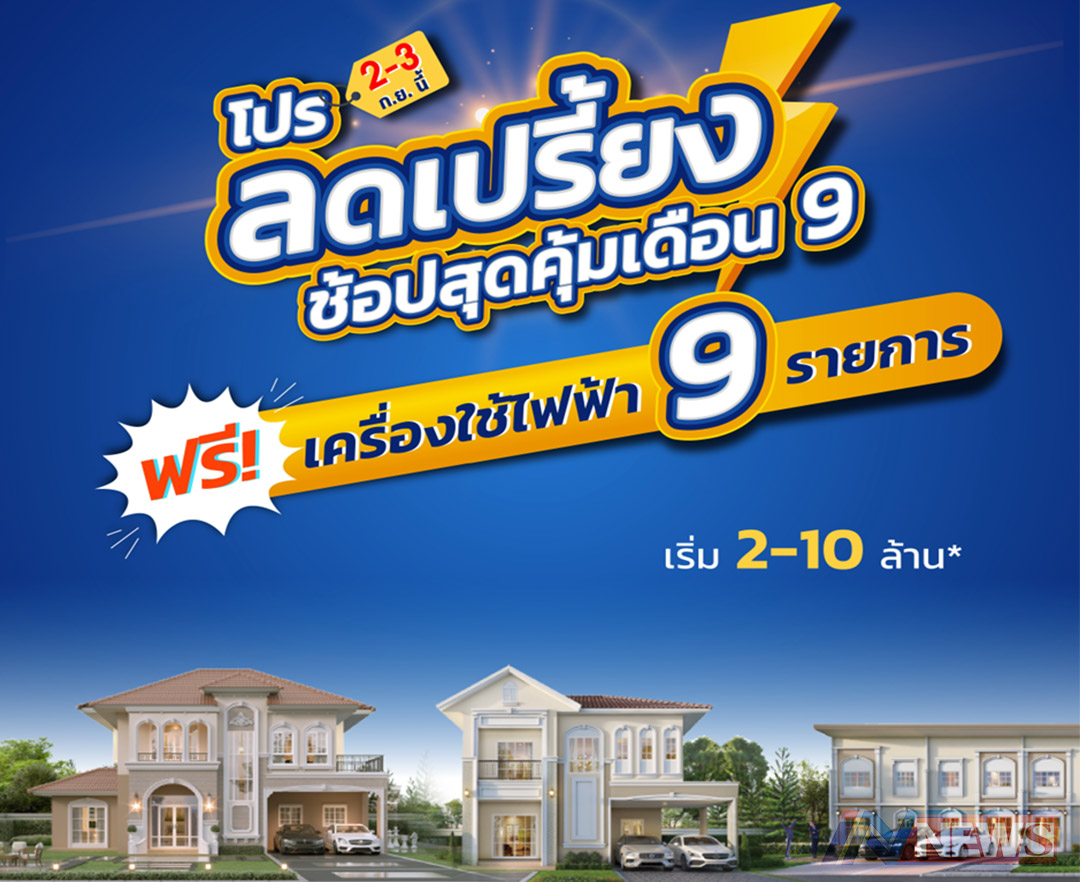 โดยโปรโมชันพิเศษ “ลดปรี้ยงช้อปสุดคุ้มเดือน 9” จะจัดขึ้นระหว่างวันที่ 2-3 กันยายน 2566 พิเศษ! สำหรับผู้ที่จองภายในงาน รับฟรี! เฟอร์นิเจอร์แบบครบชุด, ฟรี! ค่าโอน และฟรี! เครื่องใช้ไฟฟ้ามากถึง 9 รายการ อาทิ เครื่องปรับอากาศ ,ทีวี ,ตู้เย็น ,เครื่องซักผ้า ,เครื่องทำน้ำอุ่น ,ไมโครเวฟ ,เครื่องปั้มน้ำ ฯลฯ มูลค่ารวมกว่า 300,000 บาท* (เงื่อนไขเป็นไปตามที่บริษัทกำหนด) สำหรับผู้ที่จองระหว่างวันที่ 2-3 กันยายน 2566 และโอนกรรมสิทธิ์ภายใน วันที่ 30 กันยายน 2566 โดยสามารถลงทะเบียนรับสิทธิ์ได้ที่ https://bit.ly/2TKmwiO