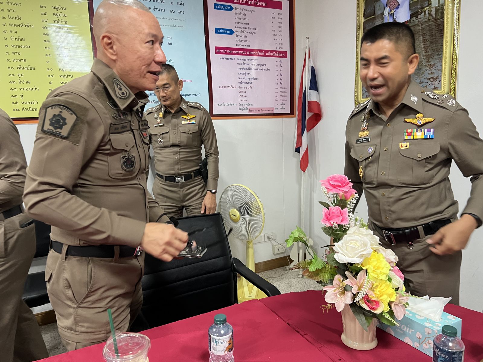 เมื่อเวลา 15.45 น. วันที่ 28 ส.ค. 2566 ผู้สื่อข่าวรายงานว่า ที่ สภ.กันทรารมย์ จ.ศรีสะเกษ พล.ต.อ.สุรเชษฐ์ หักพาล รอง ผบ.ตร.พร้อมด้วย คณะนายตรวจระดับสูงของสำนักงานตำรวจแห่งชาติ ได้เดินทางมาติดตามการดำเนินคดีที่คนร้ายใช้อาวุธปืนยิง นายบุญชอบ พวงจำปา ปลัดอาวุโส อ.กันทรารมย์ เสียชีวิต เหตุเกิดเมื่อเวลาประมาณ 10.30 น. ของวันที่ 27 ส.ค.2566 ที่บริเวณถนนสาธารณะระหว่างบ้านโคก -บ้านหนองกี่ บริเวณตรงข้ามศูนย์พัฒนาเด็กเล็กบ้านหนองกี่ ต.ยาง อ.กันทรารมย์ จ.ศรีสะเกษ ซึ่งต่อมา พล.ต.ต.ลาภ ศรีสำอางค์ ผบก.ภ.จว.ศรีสะเกษ พร้อมด้วย พ.ต.อ.ธัชพงศ์ พรหมมา ผกก.สภ.กันทรารมย์ เจ้าหน้าที่ ตร.ชุดสืบสวน สภ.กันทรารมย์และชุดสืบสวน ภ.จว.ศรีสะเกษ สามารถจับกุมคนร้ายได้คือ นายอรรถมงคล สมแก้ว หรือแจ็ค บ้านโคก อายุ 28 ปี อยู่บ้านเลขที่ 47/2 หมู่ 5 ต.ยาง อ.กันทรารมย์ จ.ศรีสะเกษ มาดำเนินคดีในข้อหา ฆ่าผู้อื่นตายโดยเจตนาและโดยไตร่ตรองไว้ก่อน ข้อหามีอาวุธปืนไว้ในครอบครองโดยไม่ได้รับอนุญาต และเสพยาเสพติดให้โทษ ซึ่งผู้ต้องหาได้ให้การรับสารภาพ โดยมี พล.ต.ท.สมประสงค์ เย็นท้วม ผบช.ภาค 3 พร้อมด้วย พล.ต.ต.ลาภ ศรีสำอางค์ ผบก.ภ.จว.ศรีสะเกษ นายนพ พงศ์ผลาดิสัย รอง ผวจ.ศรีสะเกษ นายธาตรี สิริรุ่งวนิช ปลัด จ.ศรีสะเกษ พ.ต.อ.ธัชพงศ์ พรหมมา ผกก.สภ.กันทรารมย์ และนายอิทธิพล สุยะลา นายอำเภอกันทรารมย์ ให้การต้อนรับและบรรยายสรุปเรื่องคดีนี้ให้ทราบ