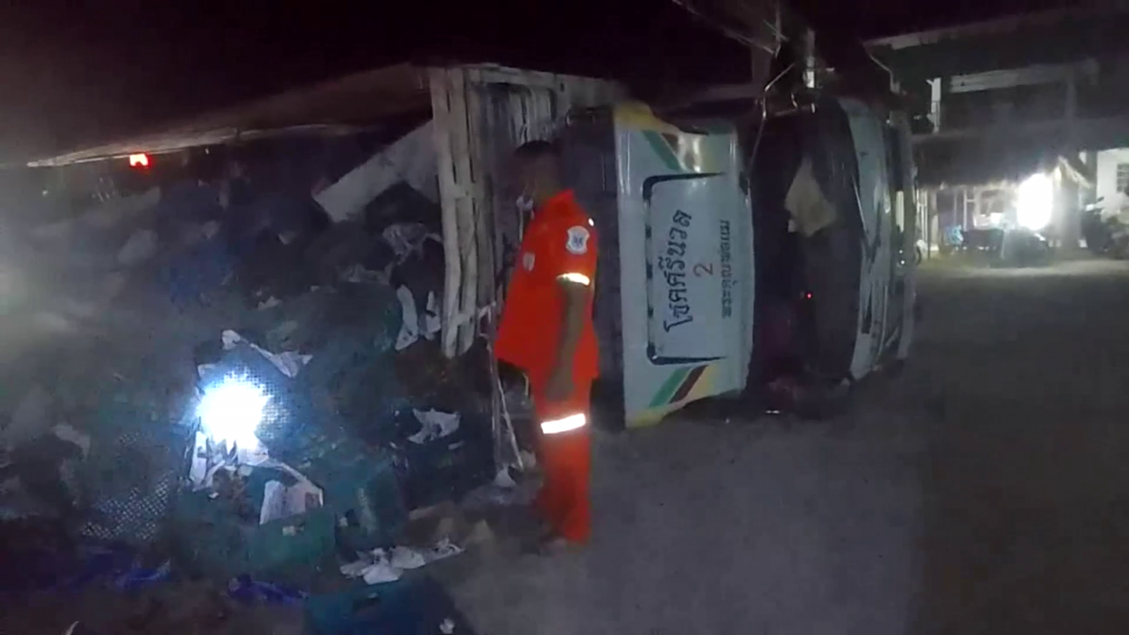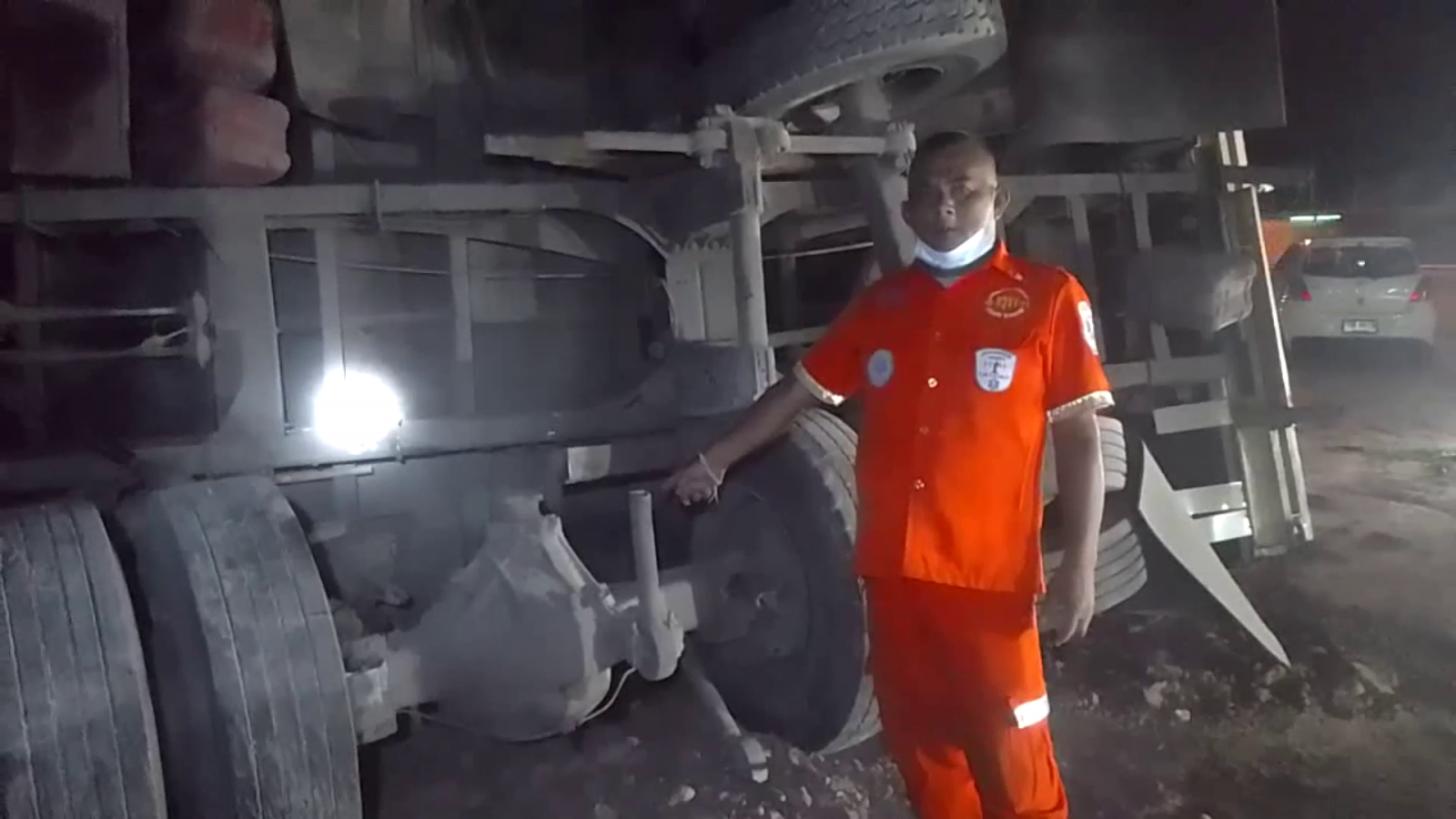 สอบถามนายอำนาจ นะวัน อายุ 36 ปี คนขับรถบรรทุกสิบล้อ เปิดเผยว่า ตนได้ขับรถรับผลไม้มาจากนครศรีธรรมราชจะไปส่งที่จังหวัดอุบลราชธานีพอมาถึงที่เกิดเหตุล้อยางด้านหน้าด้านขวาเกิดระเบิดทำให้รถเสียหลักตนตอนนั้นได้สติดีจึงได้ประคองรถเพื่อหลบออกจากถนนที่มีรถวิ่งจำนวนมากหวั่นอุบัติเหตุซ้ำซ้อนและพยายามหักเลี้ยวเข้าทางหมู่บ้าน แต่ปรากฏว่าช่วงหักเลี้ยวได้มีคนกำลังข้ามถนนด้วย แต่โชคดีที่รถไม่ได้ขับไปชนคนดังกล่าวหลังจากพลิกคว่ำตนก็ได้ลงมาดูสภาพรถและสินค้าที่ขนมา ซึ่งตนไม่ได้บาดเจ็บอะไรมาก แต่สินค้าที่บรรทุกมาเสียหายหลายลังมาก ทั้งนี้ก็ได้เดินทางไปโรงพยาบาลเพื่อเช็คอาการที่บาดเจ็บและให้ปากคำกับทางเจ้าหน้าที่ตำรวจต่อไป