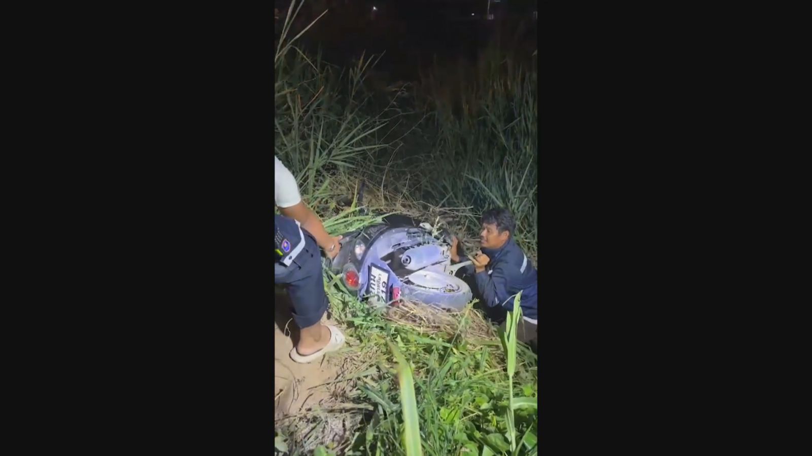 นครราชสีมา-โจ๋ซิ่งมอเตอร์ไซด์หนีตำรวจหลังพบพิรุธก่อนพุ่งตกลงคลองข้างทางตรวจค้นพบยาบ้า 37 เม็ดลากคนลากรถขึ้นฝั่งสุดลำบาก