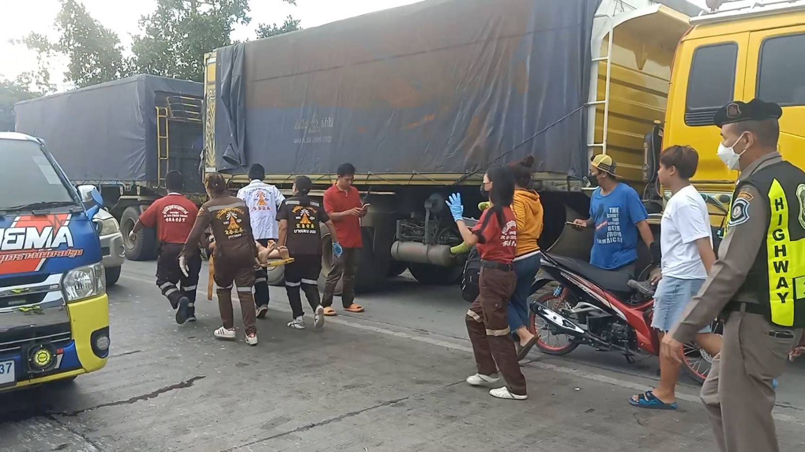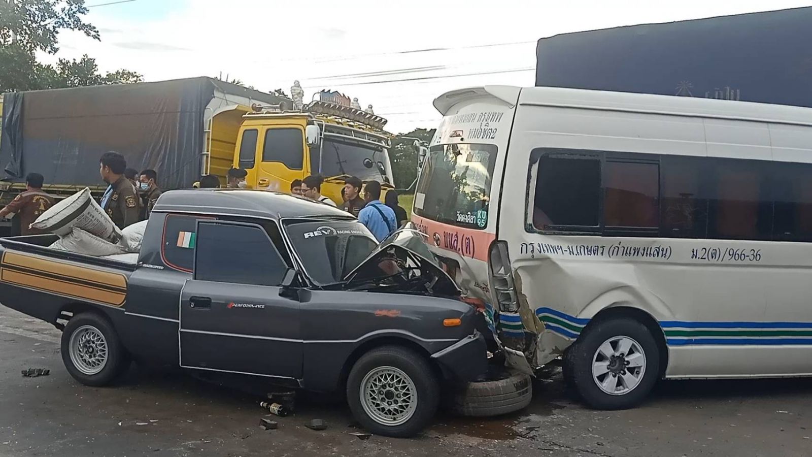 จากนั้นได้สอบถามนาย จิระวัฒน์ เอี่ยมอ่อน อายุ 43 ปีขับรถโดยสารบอกอีกว่าตนเองขับรถตู้โดยสารวิ่งมาทางตรงเลนซ้ายและเห็นรถกระบะบรรทุกมาสด้าวิ่งมาเร็วตนเองคิดว่าหลบไม่ทันจึงมีเสียงดังว่าถูกชนท้านรถตู้และรถได้เสียหลัยไปชนกับรถบรรทุก18 ล้อจนรถโดยสารได้รับความเสียหายและผู้โดยสารได้รับบาดเจ็บดังกล่าว