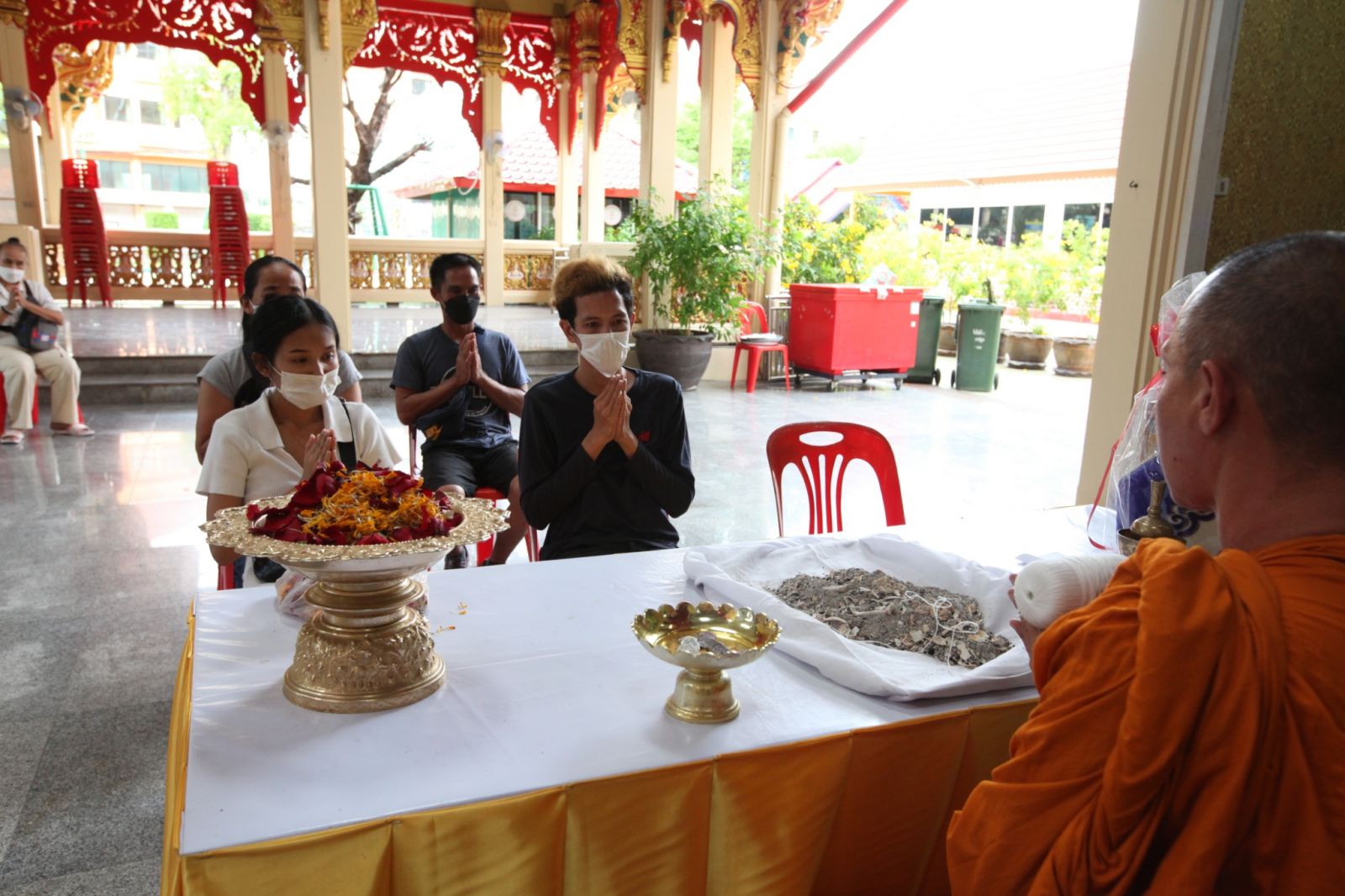 โดยเมื่อร่างของน้องภูมิ มาถึงคณะสงฆ์ได้ดำเนินการสวดบังสุกุลให้ก่อนที่จะนำร่างบรรจุใส่เตาเผา โดยมีพ่อแม่ ยายและคนในครอบครัวมาร่วมกันส่งดวงวิญญาณเป็นครั้งสุดท้าย และได้ทำพิธีในการจัดเก็บอัฐิไปในวันเดียวกัน ซึ่งนายกัณฐัศว์ พงศ์ไพบูลย์เวชย์ หรือ “กัน จอมพลัง” ได้ประสานมายัง พระครูปลัดสิทธิวัฒน์ (หลวงพี่น้ำฝน) เจ้าอาวาสวัดไผ่ล้อม ในการขออนุเคราะห์ในการดำเนินการสวดเผา ฟรี ตามโครงการของวัดไผ่ล้อมที่มีการดำเนินการให้กับประชาชน