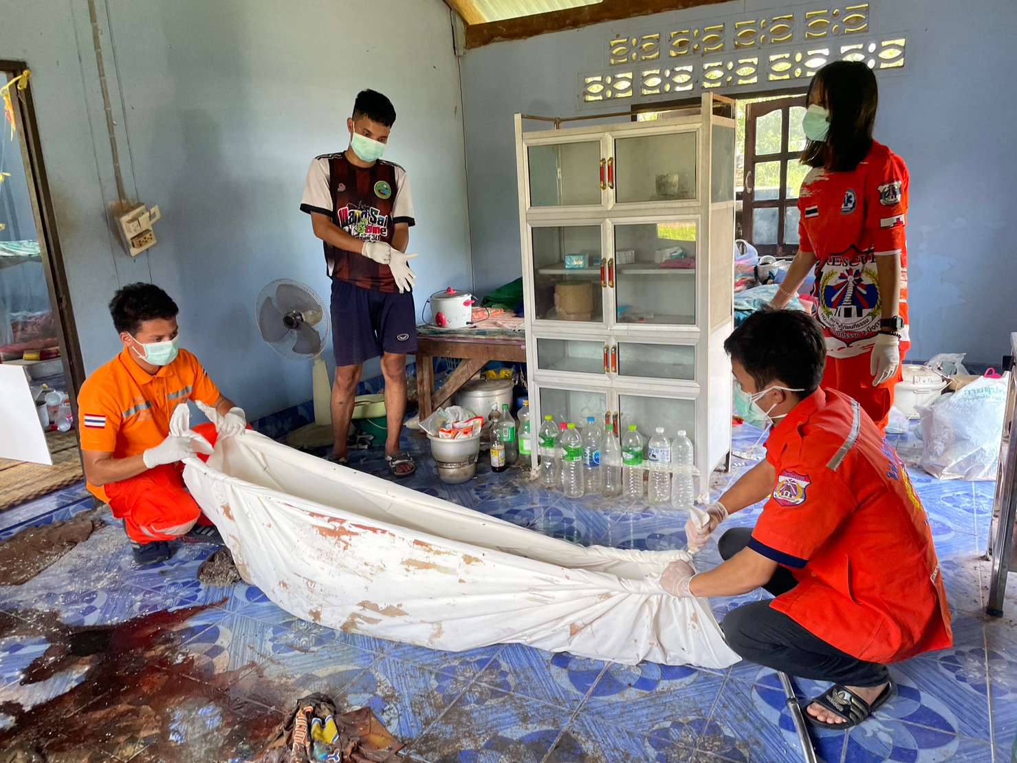 ที่เกิดเหตุ พบร่างผู้เสียชีวิตนอนอยู่บริเวณหลังบ้าน สภาพร่างผู้เสียชีวิตนอนคว่ำหน้าไม่สวมใส่เสื้อผ้าทราบชื่อต่อมาคือ นาย เคียงฮี สัจจามั่นมงคล อายุ 60-70 ปี เสียชีวิตมาแล้วไม่ต่ำกว่า 3 วัน และข้างกันพบคุณยายทราบชื่อ นางสมศรี ทิพย์มา อายุ 62 ปี เป็นภรรยาของคุณตาและป่วยติดเตียงและยังเป็นโรคอัลไซเมอร์นั่งเฝ้านอนเฝ้าคุณตาไม่ห่างถึงแม้จะไม่ทราบว่าสามีเสียชีวิต