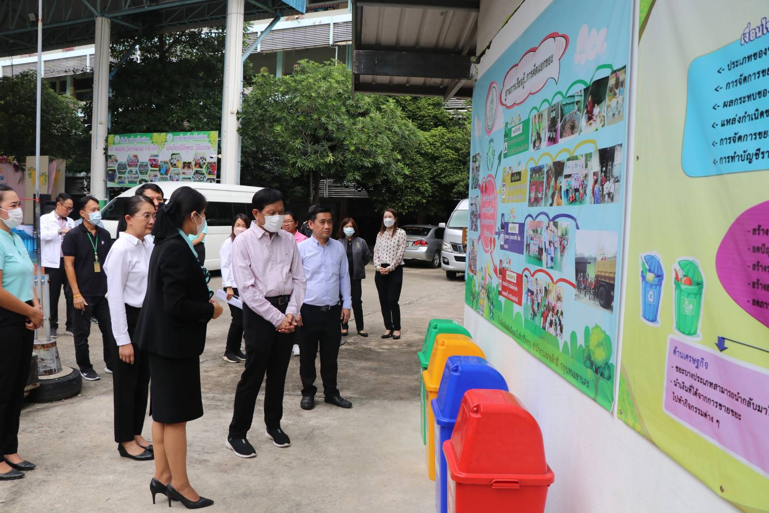 เยี่ยมชมต้นแบบการคัดแยกขยะ โรงเรียนวัดหลักสี่ (ทองใบทิวารีวิทยา) พื้นที่ 4 ไร่ 2 งาน 76 ตารางวา มีครูบุคลากรและนักเรียน 804 คน เข้าร่วมโครงการคัดแยกขยะ ตั้งแต่ปี 2559 วิธีการคัดแยกขยะ โดยจำแนกตามประเภทของขยะ ดังนี้ 1.ขยะอินทรีย์ เศษอาหาร จะมีเกษตรกรมารับไป และบางส่วนนำไปทำปุ๋ยหมัก เศษกิ่งไม้ใบไม้ จะเก็บรวบรวมที่จุดทำปุ๋ยหมัก เปลือกไข่ นำมาทำกระถางปลูกต้นไม้ 2.ขยะรีไซเคิล โรงเรียนมีโครงการธนาคารขยะ 3.ขยะทั่วไป นัดหมายเขตฯ เข้าจัดเก็บขยะที่จุดพักขยะในโรงเรียน 4.ขยะอันตราย รวบรวมบริเวณจุดพักขยะ เมื่อมีปริมาณมากจะแจ้งเขตฯ เข้าจัดเก็บ สำหรับปริมาณขยะก่อนคัดแยกรวมทั้งหมด 1,150 กิโลกรัม/เดือน (ข้อมูลเดือนกันยายน 2566) ขยะทั่วไปหลังคัดแยก 863 กิโลกรัม/เดือน ขยะรีไซเคิลหลังคัดแยก 35 กิโลกรัม/เดือน ขยะอินทรีย์หลังคัดแยก 250 กิโลกรัม/เดือน ขยะอันตรายหลังคัดแยก 0.5 กิโลกรัม/เดือน ขยะติดเชื้อหลังคัดแยก 1 กิโลกรัม/เดือน