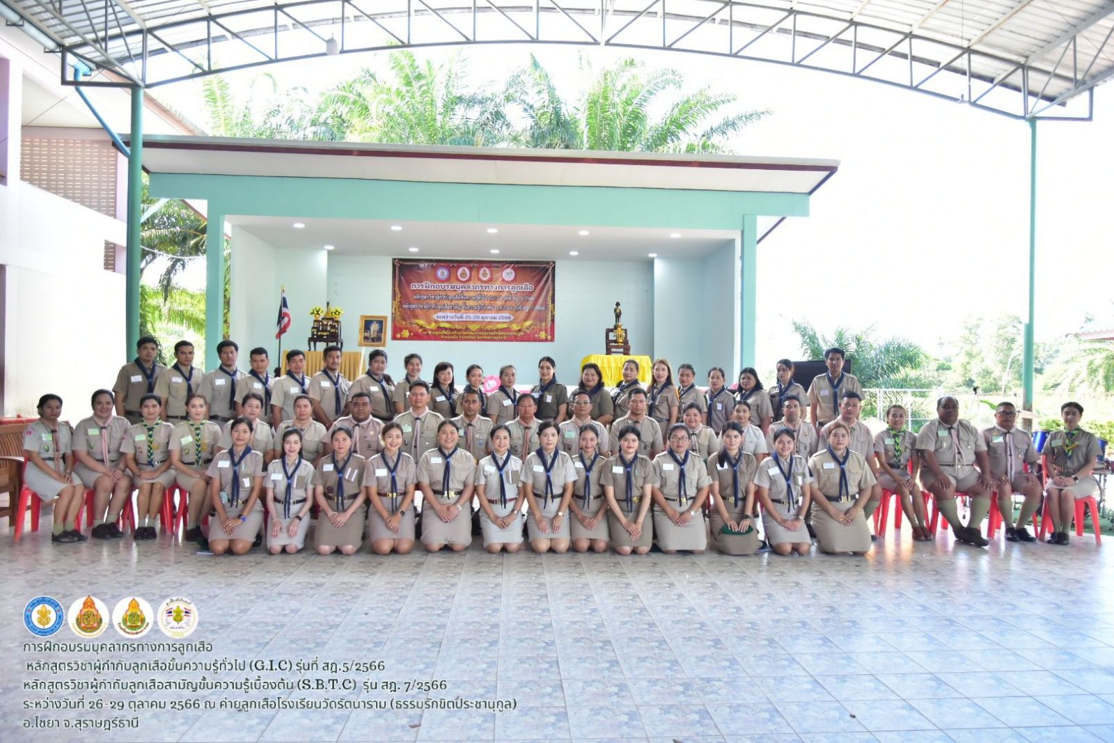 สุราษฏร์ธานี-วันที่ 27 ตุลาคม 2566 เวลา 09.00 น. ณ ค่ายลูกเสือโรงเรียนวัดรัตนาราม (ธรรมรักขิตประชานุกูล) อ.ไชยา จ.สุราษฎร์ธานี สำนักงานลูกเสือจังหวัดสุราษฎร์ธานี ร่วมกับสำนักงานเขตพื้นที่การศึกษาประถมศึกษาสุราษฎร์ธานี เขต 2 โรงเรียนวัดรัตนาราม (ธรรมรักขิตประชานุกูล) และชมรมลูกเสือเสรีเมืองคนดี กำหนดจัดการฝึกอบรมหลักสูตรผู้กำกับลูกเสือสามัญ ขั้นความรู้เบื้องต้น (S.B.T.C.) รุ่นที่ 7/2566 โดยได้รับเกียรติจาก นายพรศักดิ์ อ่ำใหญ่ ผู้อำนวยการโรงเรียนประถมพุทธนิคม เป็นประธานในพิธีเปิดการฝึกอบรม โดยได้จัดการฝึกอบรมแบบอยู่ค่ายพักแรมระหว่างวันที่ 27 – 29 ตุลาคม 2566 ทั้งนี้ได้แต่งตั้งให้ นายอุดร แก้ววิรัตน์ ผู้กำกับกลุ่มลูกเสือโรงเรียนสุราษฎร์พิทยา เป็นผู้อำนวยการฝึกอบรม กองที่ 1 และนายราษฎร์ธานี กิมเสาร์ ผู้อำนวยการโรงเรียนบ้านสี่แยกสามัคคี เป็นผู้อำนวยการฝึกอบรม กองที่ 2