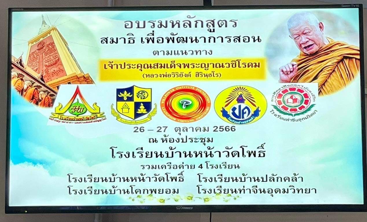 เพื่อให้เยาวชนของชาติ ครู-อาจารย์ บุคคลากรทางการศึกษา ได้นำความรู้ สมาธิได้เรียนรู้วิธีการทำสมาธิ และให้มีการทำสมาธิ การจัดการให้มีความรู้ ความเข้าใจในเรื่องของสมาธิ และวิธีการปฏิบัติที่ถูกต้อง เพื่อที่จะได้นำไปดูแลเด็กนักเรียน โดยมี ครูที่เข้าร่วมจำนวน 45 คน 4 โรง คือ โรงเรียนบ้านหน้าวัดโพธิ์,บ้านปลักคล้า, บ้านโคกพยอม,ท่าจีนอุดมวิทยา จำนวน 45 คน เพื่อความรู้และวิธีประสบการณ์การฝึกปฏิบัติส่งต่อนะกเรียนได้เรียนรู้ เกิดสมาธิแก่นักเรียนทั้ง 4 แห่งต่อไป