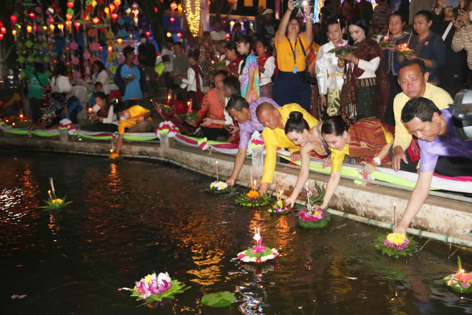 กาฬสินธุ์-สุดทึ่ง อบต.หนองแวง อำเภอสมเด็จ จังหวัดกาฬสินธุ์ เนรมิตบริเวณหนองน้ำเฉลิมพระเกียรติและที่ทำการ อบต. กว่า 10 ไร่ เป็นสถานที่จัดงานประเพณีลอยกระทงโคมธุง ผสมผสานศิลปวัฒนธรรมอีสาน-ล้านนา จัดเต็มประดับประดาโคมธุงสวยงามหลากสีสันกว่า 10,000 ดวง พร้อมเวทีแสดงแสง สี เสียง ยิ่งใหญ่ อลังการ ดึงศิลปินนักร้องหมอลำชื่อดัง “ดอกอ้อ ทุ่งทอง” ฟีเจอร์ริ่งกับ “ไข่มุก-เฉลิมขวัญ หล่อตระกูล” นายก อบจ.กาฬสินธุ์ เรียกเสียงกรี๊ดกระหึ่ม สร้างความสุข ประทับใจที่สุดในการจัดงานลอยกระทงที่จังหวัดกาฬสินธุ์