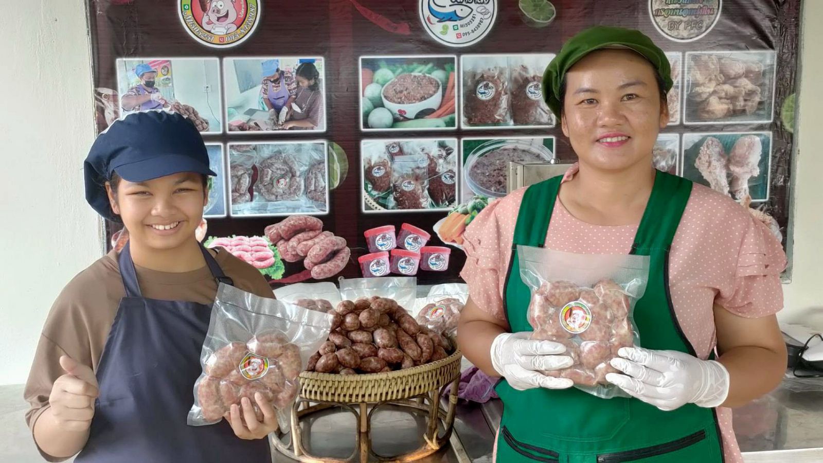 ซึ่งขณะผู้สื่อข่าวเดินทางไปถึง น้องพีค กำลังคลุกเคล้าส่วนผสมของไส้กรอก โดยมีผู้เป็นแม่คอยเติมสูตรส่วนผสม ก่อนจะนำวัตถุดิบที่ผสมเสร็จแล้ว นำมาใส่เครื่องยัดใส้ไส้กรอก เพื่อยัดส่วนผสมใส่ไส้หมูและมัดเป็นลูกๆเพื่อให้พอดีคำ ก่อนนำไปผึ่งค้างคืน 1 คืน และนำมาแพคบรรจุลงถุงสูญญากาศ พร้อมติดแพคเกจส่งขายตามออเดอร์ จนปัจจุบันจากครอบครัวที่เคยเป็นหนี้สิน ทำให้สามารถปลอดหนี้และมีรายได้เลี้ยงครอบครัว