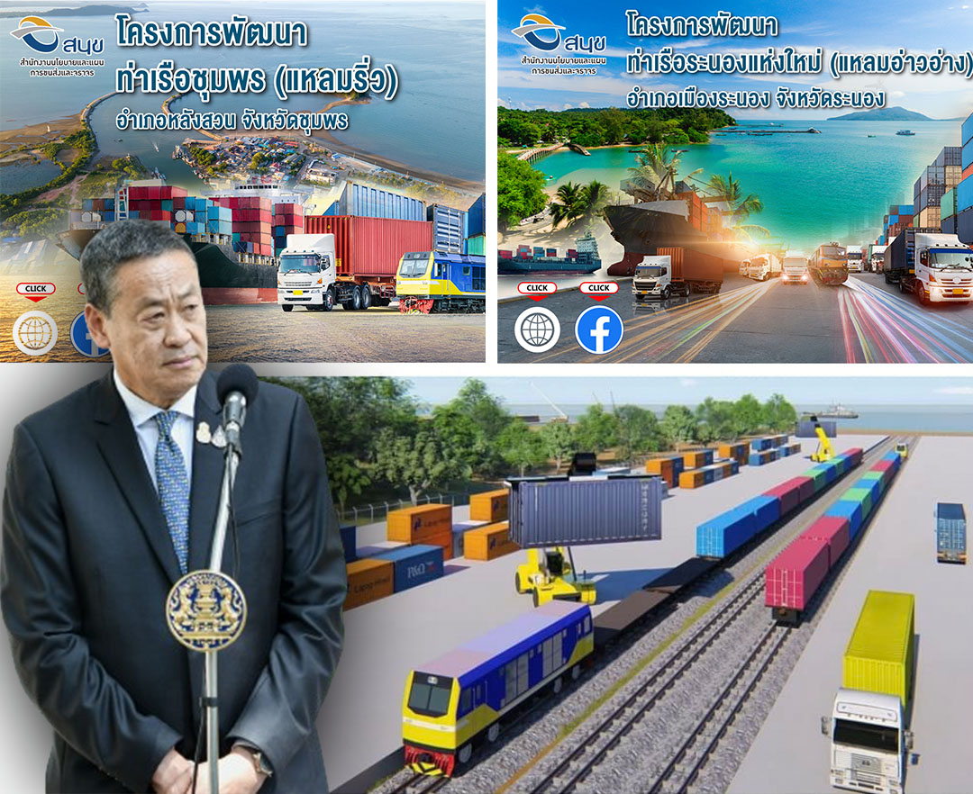 - ขยายท่าเรือ ฝั่งชุมพร มูลค่า 68,280.20 ล้านบาท เพิ่มการรองรับเป็น 20 ล้านทีอียู