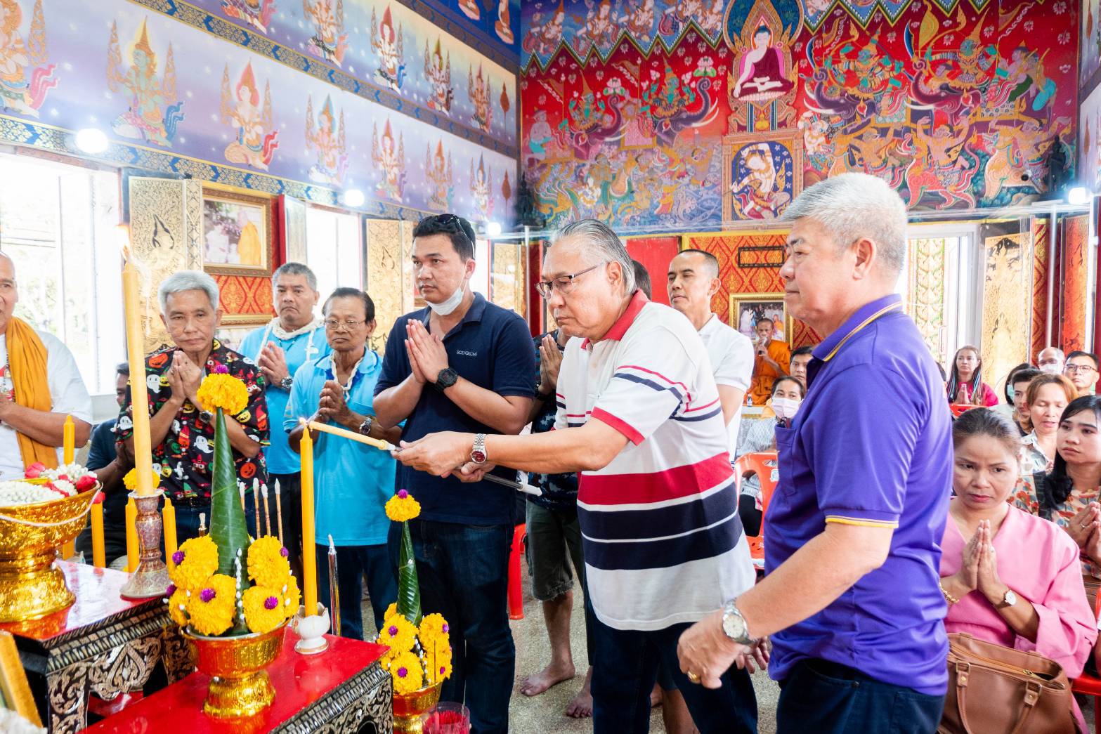 นครนายก - วัดธรรมปัญญา สวดพุทธาภิเษก , สวดเสริมดวง เสริมทรัพย์ เสริมสิริมงคล หน้าที่การงาน นั่งปรก 5 รูป