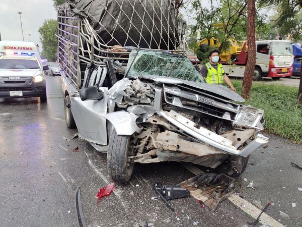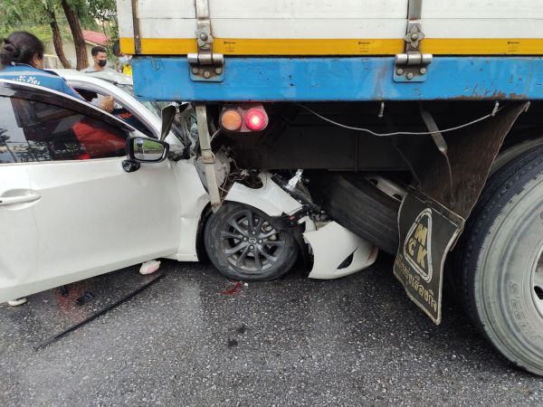 เด็ก19ซิ่งกระบะชนเก๋งพุ่งยัดท้าย18ล้อ