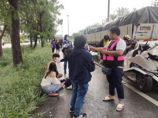 สอบถามนายอมรเทพ ชินชัยภูมิ อายุ 19 ปี คนขับรถกระบะ เปิดเผยว่า ในระหว่างที่ตนขับรถกระบะตอนนั้นใช้ความเร็วพอประมาณแต่ตอนนั้นฝนตกหนักมากจนมองไม่เห็นทาง จนกระทั่งมาถึงจุดเกิดเหตุรถของตนได้เกิดเสียหลักเนื่องจากมองทางข้างหน้าไม่เห็นส่งผลทำให้พุ่งชนเข้าท้ายรถเก๋งสีขาวและกระเด็นพุ่งไปชนรถสิบล้อ ตอนนั้นตนตกใจมากแต่ไม่ได้รับบาดเจ็บจึงได้วิ่งลงมาดูคนขับรถเก๋งพบว่าผู้ชาย 3 คนไม่ได้รับบาดเจ็บ แต่มีเด็กผู้หญิงติดอยู่ภายใน 1 ราย จึงได้โทรประสานเจ้าหน้าที่กู้ภัยและเจ้าหน้าที่ตำรวจมาตรวจสอบที่เกิดเหตุดังกล่าว