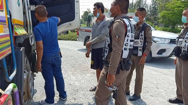 วันนี้ 24 เม.ย. 64 ช่วงบ่ายที่ผ่านมา ได้เกิดเหตุระทึกขวัญเมื่อ พ.ต.ท.อรรณพ ศรีสวาท สว.(สอบสวน) สภ.บางเลน รับแจ้งมีเหตุรถบรรทุกเฉี่ยวชนรถประชาชนยี่ห้อฮอนด้า ซิตี้ สีเทา แล้วหลบหนี จึงได้สั่งให้รถสายตรวจรถจยย.และสายตรวจรถยนต์ออกสกัดและติดตามเส้นทางหลวงหมายเลข 346 บางเลน-ลาดหลุมแก้ว กระทั่งพบรถเป้าหมายเป็นรถบรรทุกพ่วง 18 ล้อยี่ฮีโน่ สีขาว-น้ำเงิน หมายเลขทะเบียน 82-6046 กาญจนบุรี วิ่งอยู่บนถนนด้วยความเร็วและมีพิรุธ ซึ่งรถยนต์สายตรวจได้ขับกวดหลังและประกบจากนั้นจึงส่งสัญญาณให้รถบรรทุกคันดังกล่าวจอดแต่รถบรรทุกคันดังกล่าวได้เหยียบคันเร่งหนีอย่างรวดเร็ว จึงได้ติดตามไปอีกประมาณ 12 กิโลเมตร ผ่านบริเวณสามแยกบางเลนเลี้ยวซ้ายมุ่งหน้าเข้าอำเภอดอนตูมเจ้าหน้าที่ตร.จึงวิทยุประสานขอกำลังจากตร.สภ.ดอนตูมเพื่อเข้าสนับสนุนการเข้าสกัดหยุดรถบรรทุกคันดังกล่าว