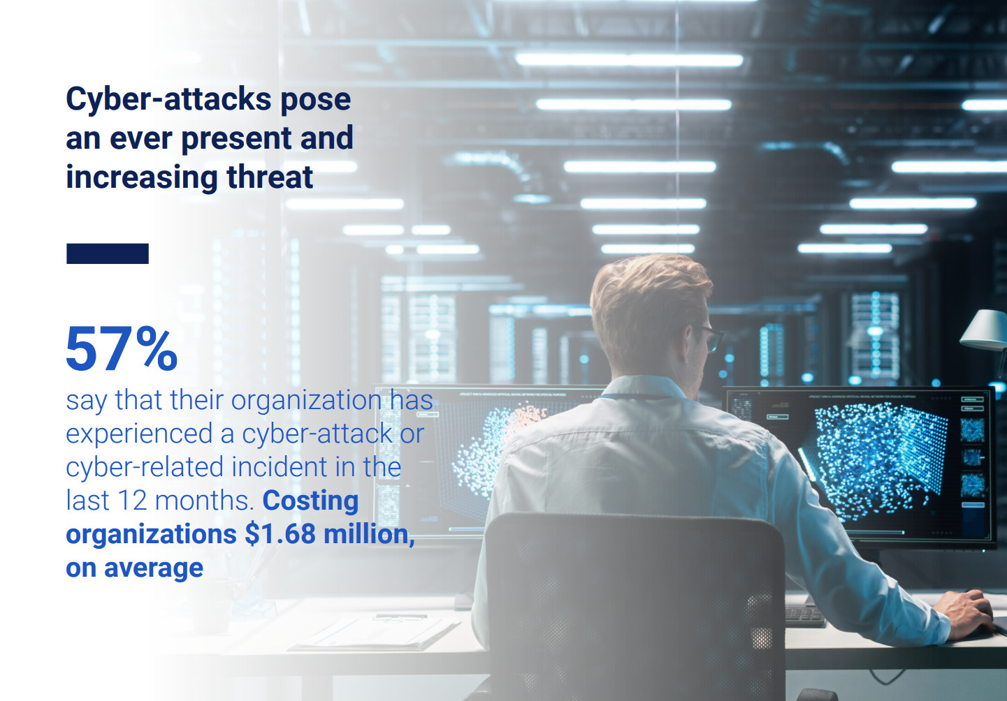 ความกังวลเกี่ยวกับภัยคุกคามทางไซเบอร์ยังคงเติบโตเพิ่มขึ้น และยังรักษาระดับอยู่ในลิสต์อันดับต้นๆ ของสาเหตุในการทำให้เกิดการเปลี่ยนแปลงที่ไม่คาดคิด (disruption) โดยจำนวน 57% ของผู้ตอบแบบสอบถามในประเทศออสเตรเลีย อินเดีย ญี่ปุ่น เกาหลีใต้ และสิงคโปร์ รายงานถึงการโจมตีทางไซเบอร์ที่ขัดขวางการเข้าถึงข้อมูลในช่วงระยะ 12 เดือนที่ผ่านมา ซึ่งถือเป็นสัดส่วนที่สูงที่สุดในระยะเวลากว่า 5 ปี นอกจากนี้ ผลกระทบทางการเงินที่มีต่อองค์กรธุรกิจถือว่าอยู่ในระดับสูงเนื่องจากค่าใช้จ่ายที่เพิ่มขึ้นมากกว่าเท่าตัว จากรายงานการวิจัยครั้งก่อนหน้าเป็นตัวเลข 1.4 ล้านเหรียญโดยเฉลี่ย