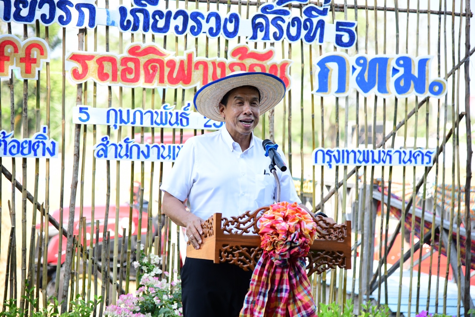 กรุงเทพฯ-(5 ก.พ.67) เวลา 14.30 น. :นายชัชชาติ สิทธิพันธุ์ ผู้ว่าราชการกรุงเทพมหานคร เป็นประธานเปิดงานสืบสานประเพณีไทยลงแขกเกี่ยวข้าว "เกี่ยวรัก เกี่ยวรวง" ครั้งที่ 5 และKick off ขับเคลื่อนกิจกรรมการใช้รถอัดฟางข้าว โดยกล่าวว่า ประเพณีลงแขกเกี่ยวข้าวเป็นเรื่องสําคัญเพราะว่าพื้นที่บริเวณนี้เป็นพื้นที่ที่มีเกษตรกรอยู่เยอะ อยากจะให้อนุรักษ์อยู่ไปนานๆ เกษตรกรต้องทํามาหากินได้และต้องมีรายได้เพียงพอ เรื่องหนึ่งที่เรามีปัญหาเยอะคือเรื่องฝุ่น PM2.5 ที่ผ่านมาเกษตรกรตกเป็นจําเลย ชอบเผาซังข้าวก่อให้เกิดมลพิษ แต่จริงๆ แล้วเชื่อว่าส่วนหนึ่งเป็นปัญหาด้านเศรษฐกิจเพราะว่าการเก็บซังข้าว การมัด ไปเช่ารถ มีค่าใช้จ่าย ถ้าเราไม่ช่วยก็ยิ่งเหมือนซ้ําเติม ถือว่าเป็นนโยบายและหวังว่าจะช่วยกันหากลดต้นทุนเกษตรกร ก็จะช่วยลดปัญหาฝุ่นมลพิษด้วย หวังว่ากิจการในวันนี้จะเกิดประโยชน์กับพี่น้องทุกคนแล้วน่าจะขยายผลเป็นตัวอย่างให้กับทั้งประเทศ หากมีเครื่องอัดฟางให้เกษตรกรทั่วประเทศใช้ได้ในราคาไม่แพง ก็จะสามารถลดการเผาและช่วยแก้ปัญหาในระยะยาวได้