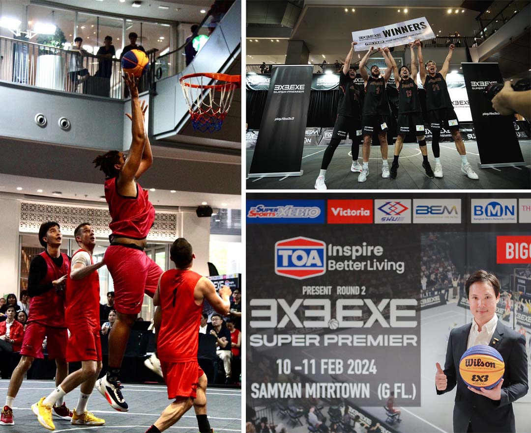 การแข่งขันลีกบาสเกตบอล 3 คน ระดับโลก รายการ “3x3. EXE SUPER PREMIER ROUND 2 BANGKOK Presented by TOA” ณ ลานอเนกประสงค์ ศูนย์การค้าสามย่านมิตรทาวน์ ชั้น G ในวันที่ 10 กุมภาพันธ์ 2567 เป็นวันแรกของการแข่งขัน พร้อมพิธีเปิดการแข่งขันอย่างเป็นทางการ โดยมี ดร. ก้องศักดิ์ ยอดมณี ผู้ว่าการการกีฬาแห่งประเทศไทย เป็นประธานในพิธี ร่วมด้วย นายวราธร เจนจรัสสกุล ผู้อำนวยการ สายงานการตลาด บริษัท ทีโอเอ เพ้นท์ (ประเทศไทย) จำกัด (มหาชน) นายยูยะ อาโอชิมะ ผู้อำนวยการ ลีกเอ็กเซ่พรีเมียร์ ประเทศญี่ปุ่น นายมานิต วรรธนะสาร อุปนายกสมาคมกีฬาบาสเกตบอลแห่งประเทศไทย และ นายทศวรรษ เตลาน ผู้อำนวยการ ลีกเอ็กเซ่พรีเมียร์ ประเทศไทย