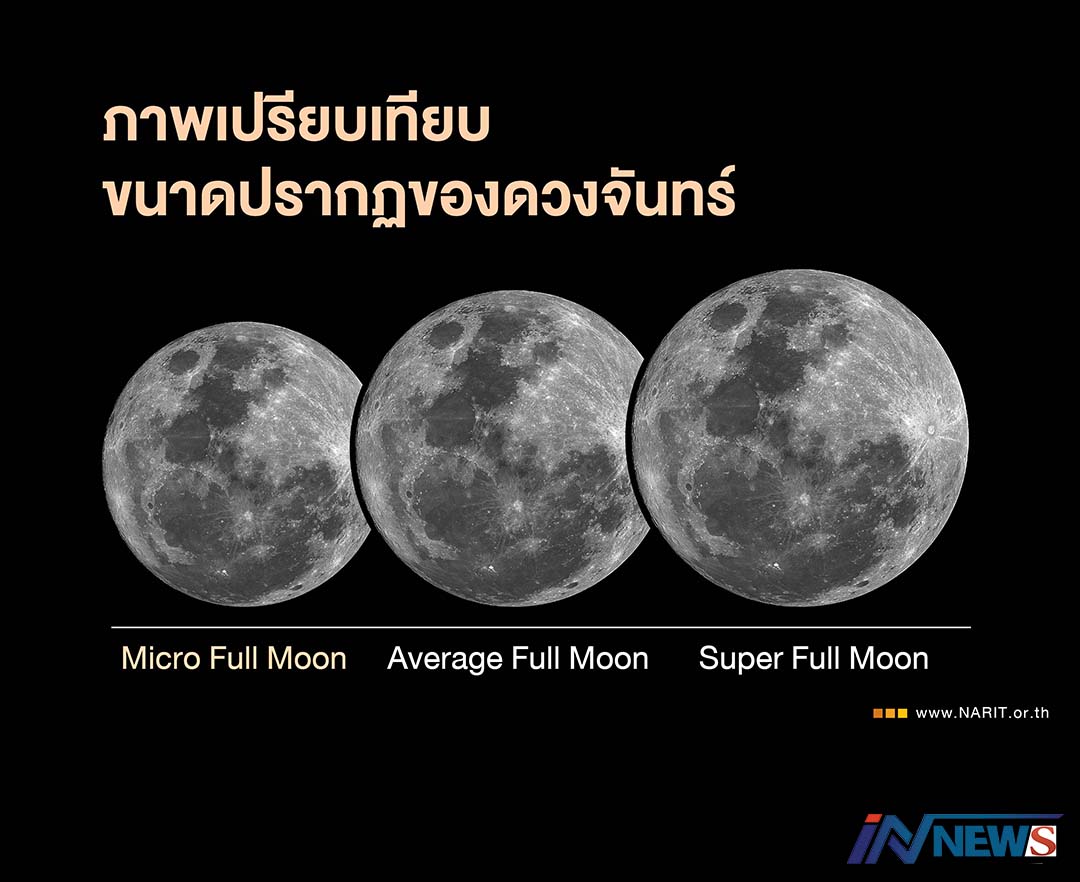 นายศุภฤกษ์ คฤหานนท์ ผู้อำนวยการศูนย์บริการวิชาการและสื่อสารทางดาราศาสตร์ สดร. เปิดเผยว่า วันที่ 24 กุมภาพันธ์ 2567 ซึ่งตรงกับวันมาฆบูชา ดวงจันทร์เต็มดวงโคจรอยู่ในระยะไกลโลกที่สุดในรอบปี หรือเรียกว่า “ไมโครฟูลมูน” (Micro Full Moon) เวลาประมาณ 19:32 น. มีระยะห่างจากโลกประมาณ 405,909 กิโลเมตร คืนดังกล่าวดวงจันทร์เต็มดวงจะมีขนาดปรากฏเล็กกว่าปกติเพียงเล็กน้อย เวลาที่เหมาะสมในการสังเกตการณ์ คือ ช่วงเย็นของวันที่ 24 กุมภาพันธ์ 2567 ตั้งแต่เวลาประมาณ 18:22 น. เป็นต้นไป ทางทิศตะวันออก