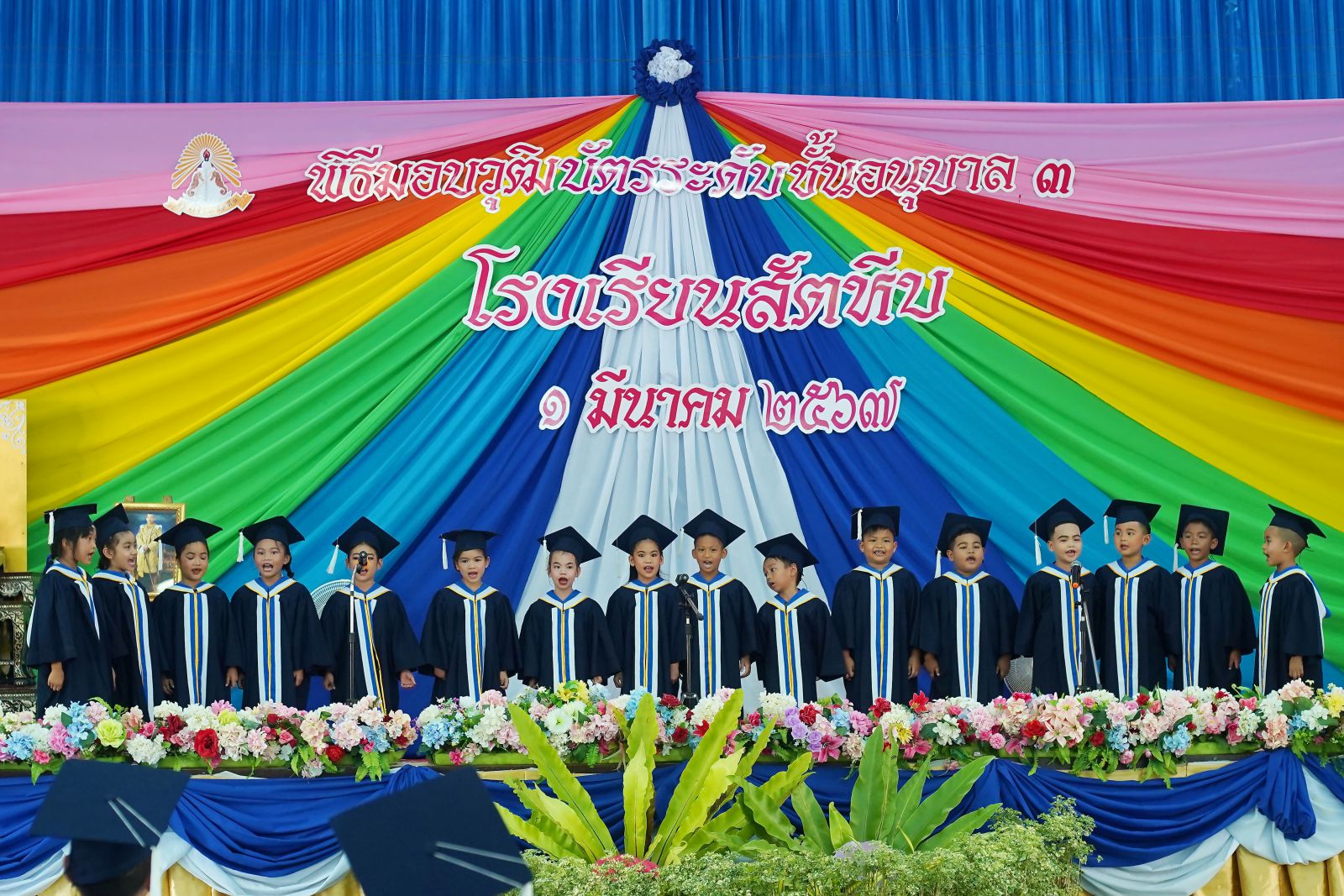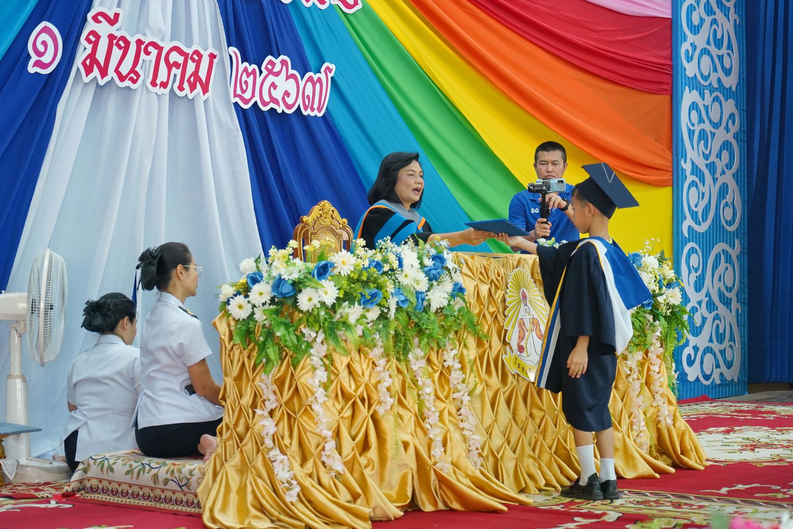 ชลบุรี-โรงเรียนสัตหีบ เขตฐานทัพเรือสัตหีบ จัดพิธีมอบวุฒิบัตรให้แก่นักเรียนที่จบหลักสูตรการศึกษาปฐมวัย ปีการศึกษา 2566