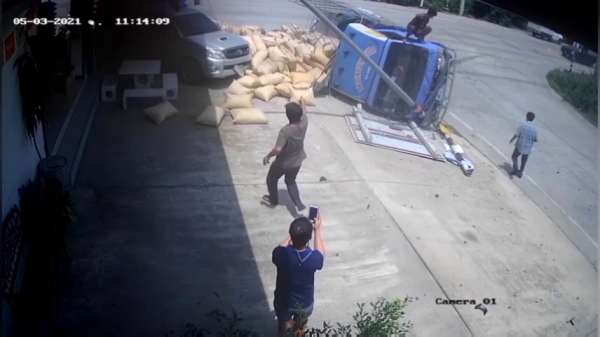 วันที่ 3 พ.ค.2564 ผู้สื่อข่าวรายงานว่า ร.ต.อ.ชุมพล แตงจุ้ย พนักงานสอบสวน สภ.บางเลน จ.นครปฐม รับแจ้งมีอุบัติเหตุรถชนกันที่เกิดเหตุพบรถยนต์และรถบรรทุก 6 ล้อชนกันจำนวน 3 คันบริเวณสามแยกอริยะเกษตรถนนสายศาลายา-นราภิรมย์ส่งผลให้รถบรรทุก 6 ล้อพลิกคว่ำกระสอบเมล็ดพลาสติกกระจายเกลื่อน มีผู้ได้รับบาดเจ็บสาหัสในที่เกิดเหตุ