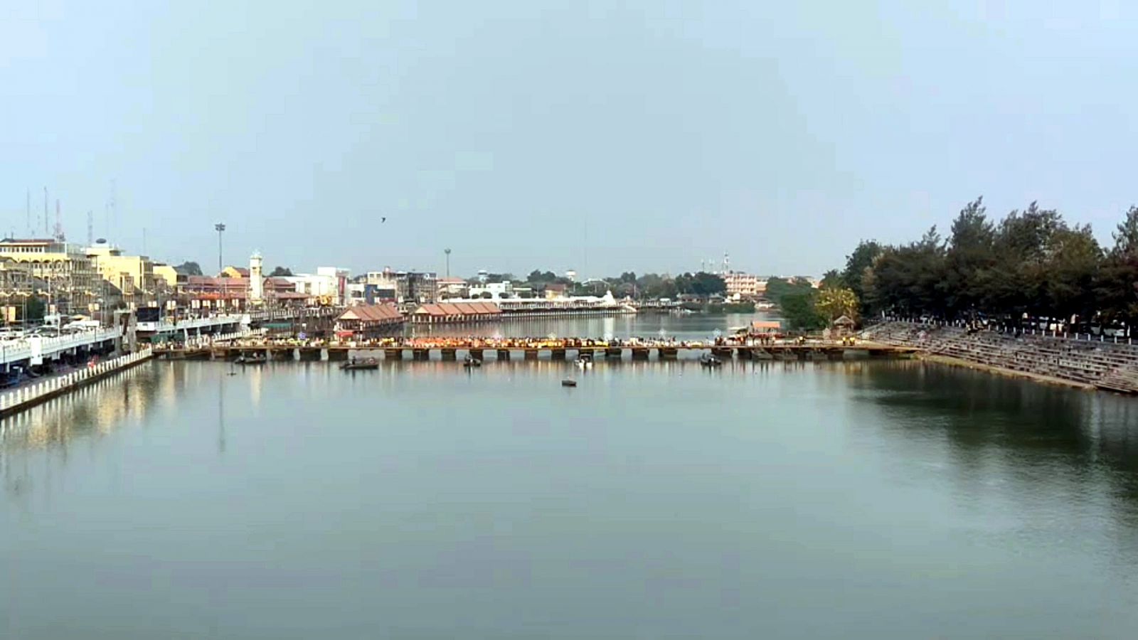 ราชบุรี-ผู้ว่าราชการจังหวัดราชบุรีจัดพิธีทำบุญตักบาตรกลางน้ำ บนสะพานลอยน้ำ M4 ข้ามสะพานแม่น้ำแม่กลอง เสริมสิริมงคลเมืองราชบุรี พร้อมส่งเสริมกระตุ้นการท่องเที่ยว