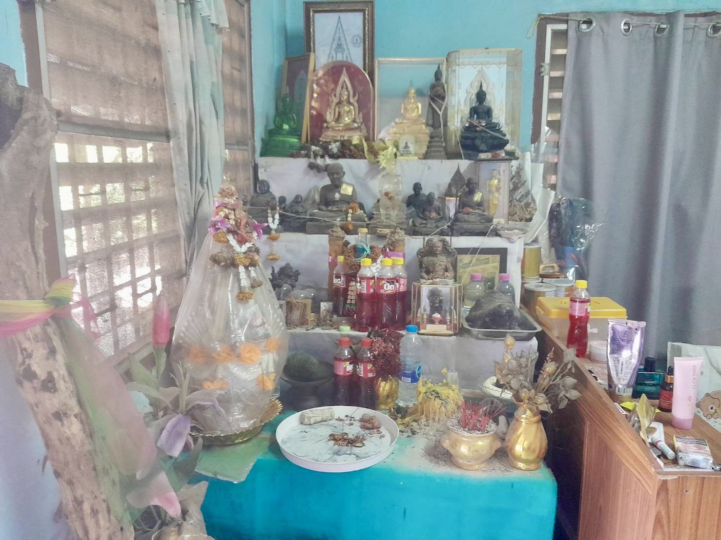 นายหนึ่งบอกอีกว่า นอกจากมีอ้วกหมูป่าแล้วตนเองก็ยังมีอ้วกหมูบ้าน หรือ หมูเลี้ยงด้วยเช่นกัน โดยได้เก็บไว้กับตัวมานานเกือบ 10ปี โดยตอนนั้นตนเองไปซื้อหมูตามบ้านแถวราชบุรีเอามาชำแระขายเนื้อผ่าท้องล้างเครื่องในพบอ้วกหมูเป็นก้อนในถุงน้ำดีเช่นกัน เมื่อจับแล้วนุ่มมือมีน้ำหนักประมาณ 1.5 กิโลกรัม ตนเองก็ไม่รู้ว่าเป็นอะไรจึงเก็บเอาไว้ที่บ้านเวลาแห้งแล้วจะมีขนยาวสีขาวเทาขนยาวมีความยาว 12 เซ็นและรอบว ง 22 เซ็นและน้ำหนักประมาณ 1 ขีดและมาทราบอีกครั้งเมื่อได้อ้วกหมูบ้าน จากการบอกของอาที่เป็นพรานป่าอยู่จังหวัดกาญจนบุรี ก็ได้บอกอีกว่าอ้วกหมู จะมีกลุ่มที่จะนิยมหาไว้ครอบครองจะส่วนมากเป็นคนต่างชาติ ซึ่งเท่าที่ทราบว่าการแลกเปลี่ยนอ้วกหมู่ป่าและอ้วกหมูบ้าน ในราคาหลักล้านบาท โดยหากใครจะแบ่งไปบูชาตนเองก็ยินดีจะปล่อยให้ไปบูชา สามารถติดต่อมาได้ โดยส่วนตัวเชื่อว่าน่าจะเป็นสองชิ้นที่มีอยู่ในจังหวัดนครปฐมเท่านั้น