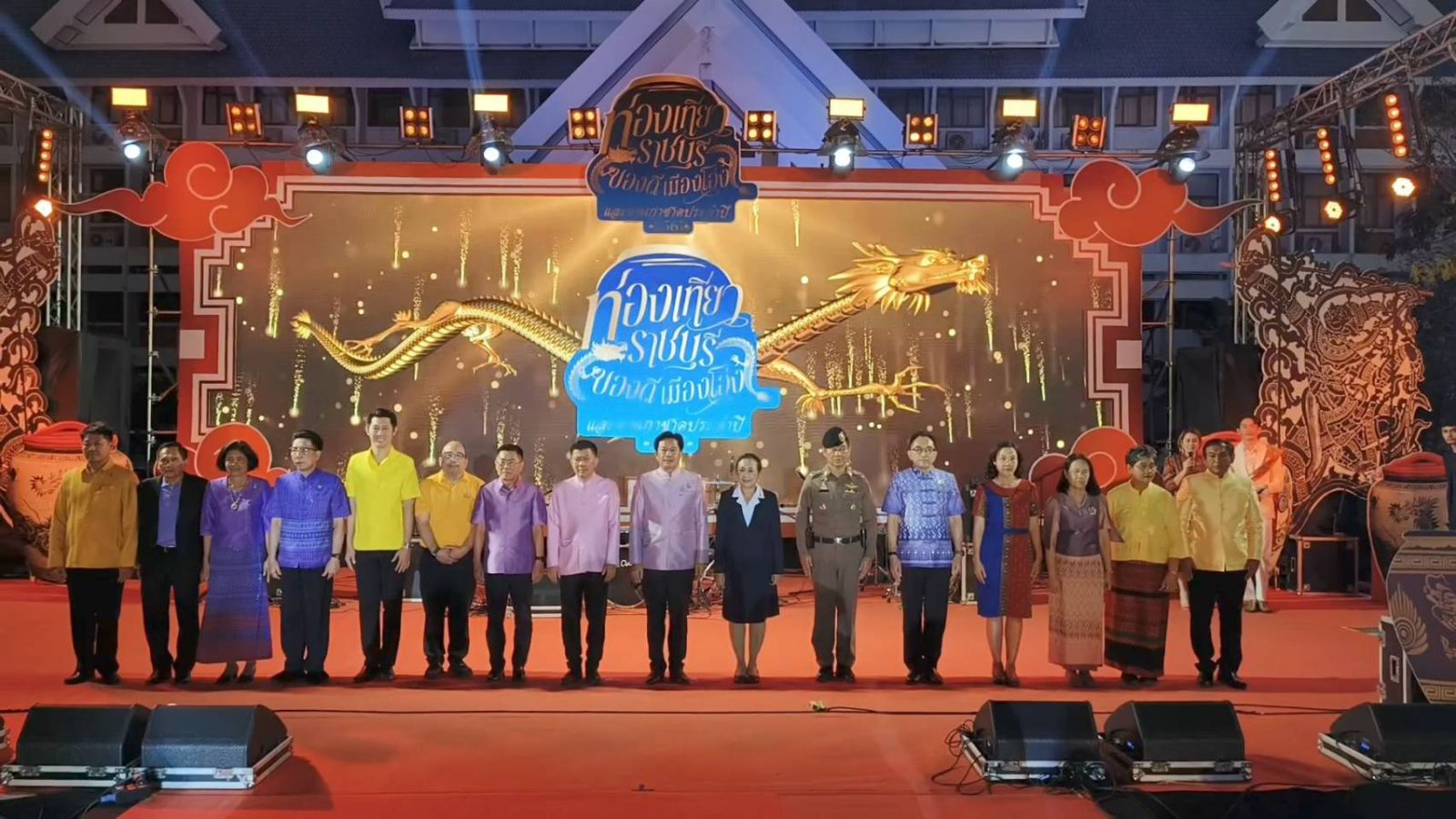 ราชบุรี - เวลา 18.00 น. วันที่ 1 เม.ย.67 บริเวณเวทีกลางหน้าองค์การบริหารจังหวัดราชบุรี อ.เมือง จ.ราชบุรี จัดพิธีเปิดงานท่องเที่ยวราชบุรี ของดีเมืองโอ่ง และงานกาชาด ประจำปี 2567 โดยมีนายเกียรติศักดิ์ ตรงศิริ ผวจ.ราชบุรี เป็นประธานในพิธี พร้อมด้วยนางพรศรี ตรงศิริ นายกเหล่ากาชาดจังหวัดราชบุรี, นายวิวัฒน์ นิติกาญจนา นายกอบจ.ราชบุรี, นายศักดิ์ชัย พิศาลผล นายกเทศมนตรี ทม.ราชบุรี หน.ส่วนราชการ, สื่อมวลชน และพี่น้องประชาชนชาวจ.ราชบุรี เข้าร่วมในพิธีนี้ด้วย