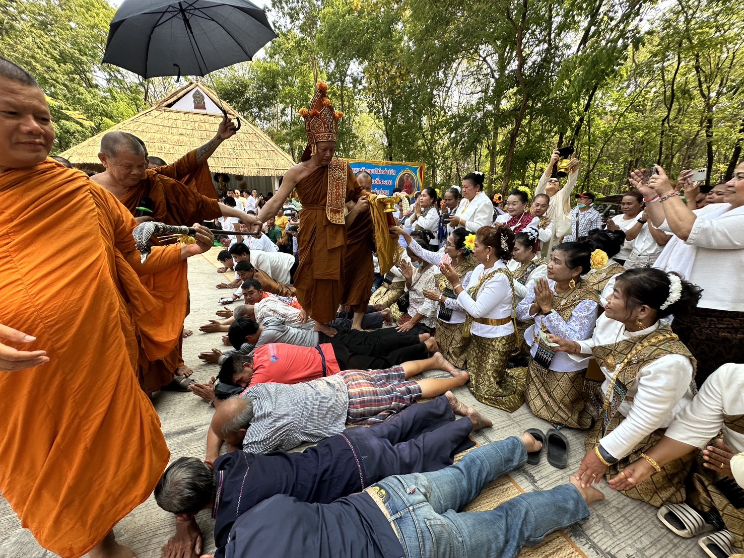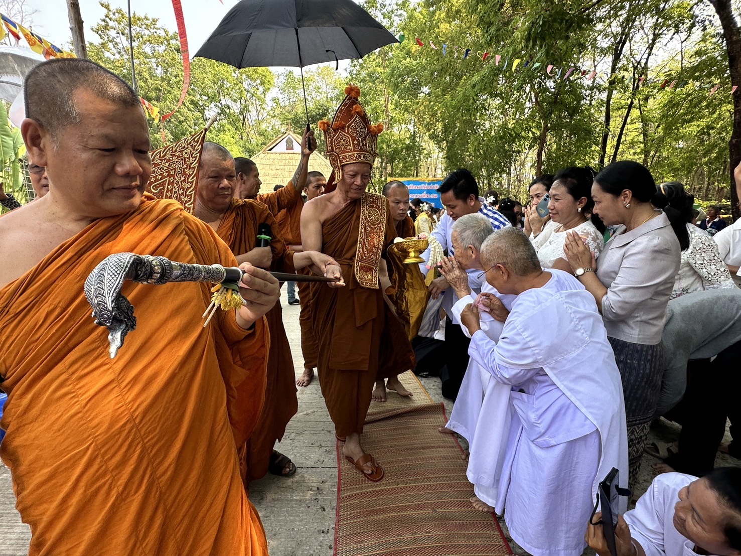 กาฬสินธุ์-พุทธศาสนิกชนทั้งชาวไทยและสปป.ลาวร่วมสืบสานประเพณีโบราณ เถราภิเษกยกย่องพระสงฆ์ปฏิบัติชอบ สวดเจริญพระพุทธมนต์ชยันโตสนั่นวัดป่าชื่อดัง