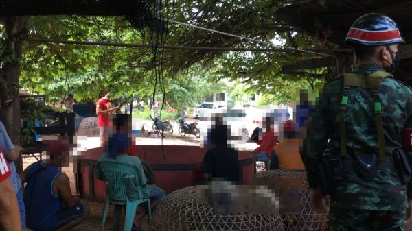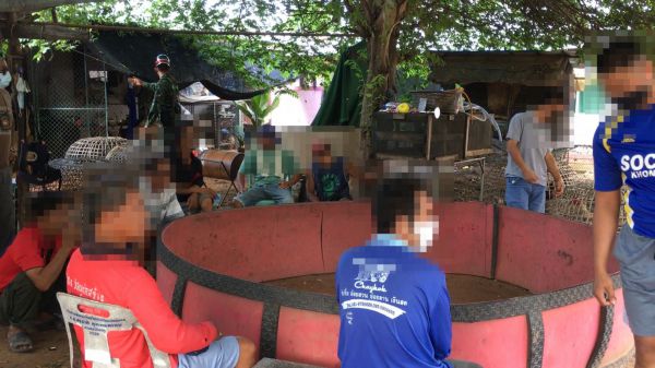 หนองบัวลำภู-ฝ่ายปกครองร่วมทหารบุกทลายบ่อนพนันไก่ชนรวบนักพนัน 13 รายไม่สนโควิดเมิน พรก.ฉุกเฉินหน้ากากอนามัยไม่ใส่