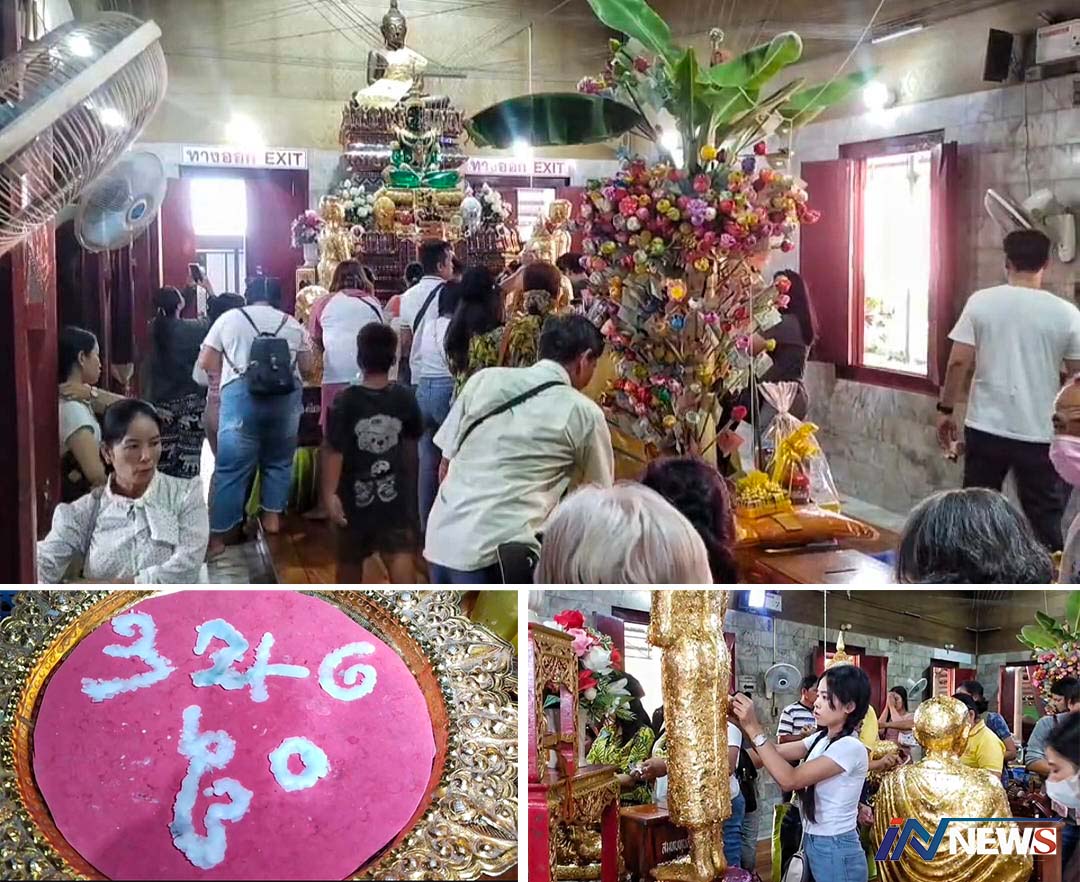 ชัดๆ เลขอ่างน้ำมนต์วัดหลวงพ่อปากแดง นักท่องเที่ยวเข้าไหว้โชคลาภคึกคัก