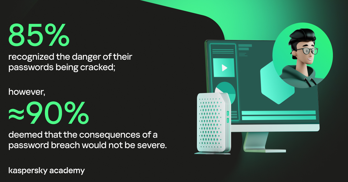 แม้ว่าการขโมยข้อมูลที่เป็นผลจากรหัสผ่านที่ถูกบุกรุกถือเป็นภัยคุกคามร้ายแรงต่อความปลอดภัยออนไลน์แต่ผู้ตอบแบบสอบถามเกือบ90% เห็นว่าผลกระทบจากการละเมิดรหัสผ่านรวมถึงการขโมยข้อมูลส่วนบุคคลจะไม่รุนแรง