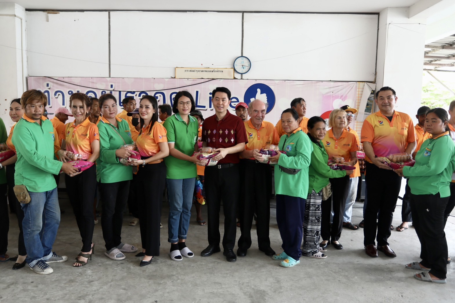 สโมสรโรตารี่ อี คลับ ดอลฟินพัทยา อินเตอร์เนชั่นแนลเป็นองค์กรที่สนับสนุนและส่งเสริมอุดมการณ์แห่งการบำเพ็ญประโยชน์ในการดำเนินกิจกรรมที่มีคุณค่า ได้เห็นความสำคัญของเจ้าหน้าที่เมืองพัทยา โดยเฉพาะเจ้าหน้าที่ที่รับผิดชอบจัดการด้านขยะมูลฝอยที่ต้องทำงานอย่างหนัก เนื่องด้วยปริมาณขยะในเมืองพัทยามีเป็นจำนวนมาก จึงได้สนับสนุนมอบข้าวสาร อาหารแห้ง (ไข่ไก่) จำนวน 400 ชุด ให้กับเจ้าหน้าที่เมืองพัทยา