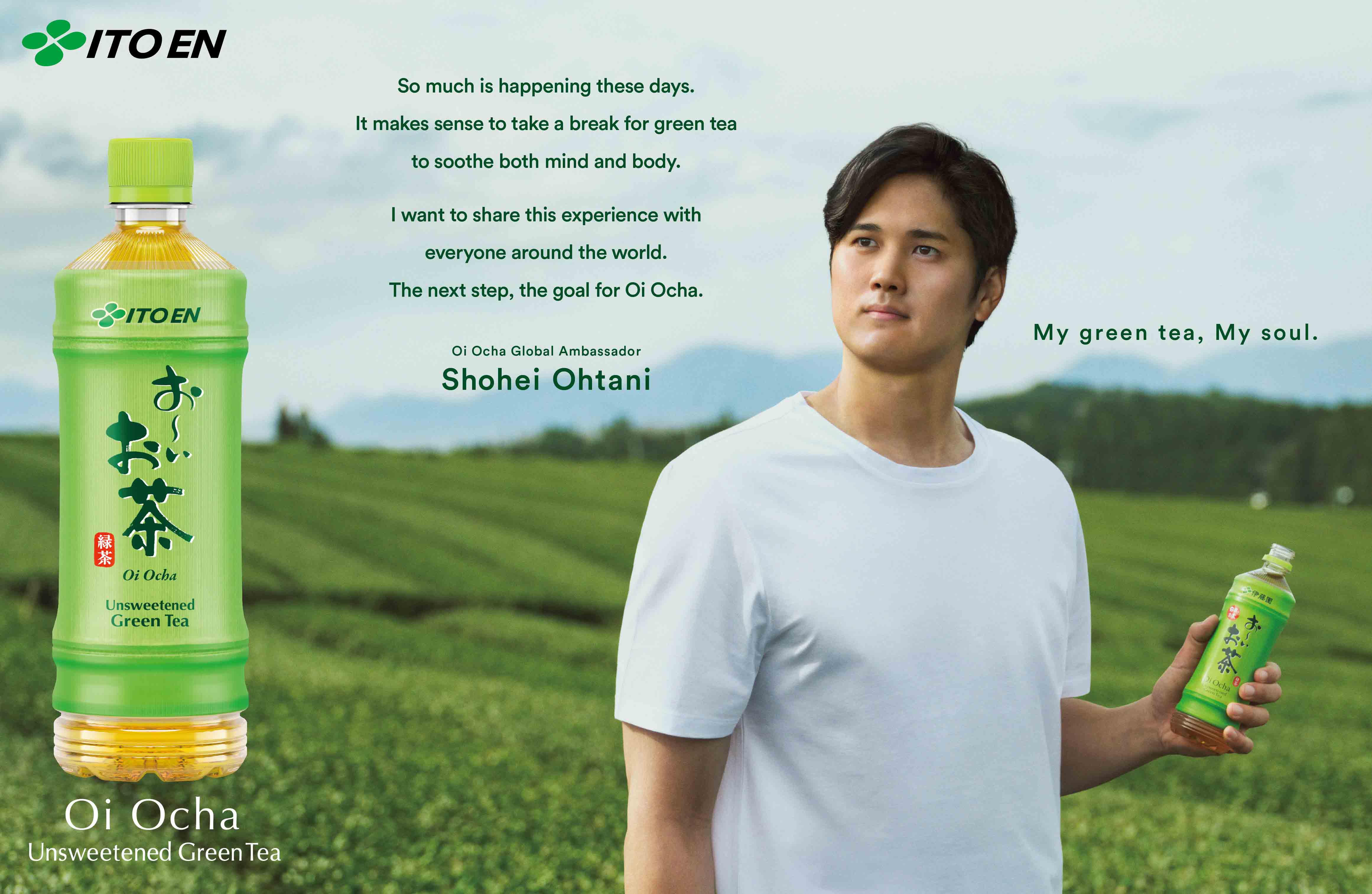 โชเฮ โอตานิ ได้รับการแต่งตั้งเป็นแอมบาสเดอร์ระดับโลกของ อิโต เอ็น “โออิ โอฉะ” รับหน้าที่โปรโมตวัฒนธรรมการดื่มชาของญี่ปุ่นไปทั่วโลก สมกับที่เขากล่าวไว้ว่า “ชาเขียวที่อยู่เคียงข้างผมในทุก ๆ วัน”