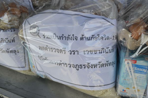 พัทลุง-ตำรวจภูธรจังหวัดพัทลุง นำเครื่องอุปโภคบริโภคมอบชวยเหลือชาวบ้าน300 ครัวเรือน ที่ถูกกักตัวจากสถานการณ์การแพร่ระบาดของโรค โควิด 19 ในพื้นที่ อำเภอควนขนุน จังหวัดพัทลุง
