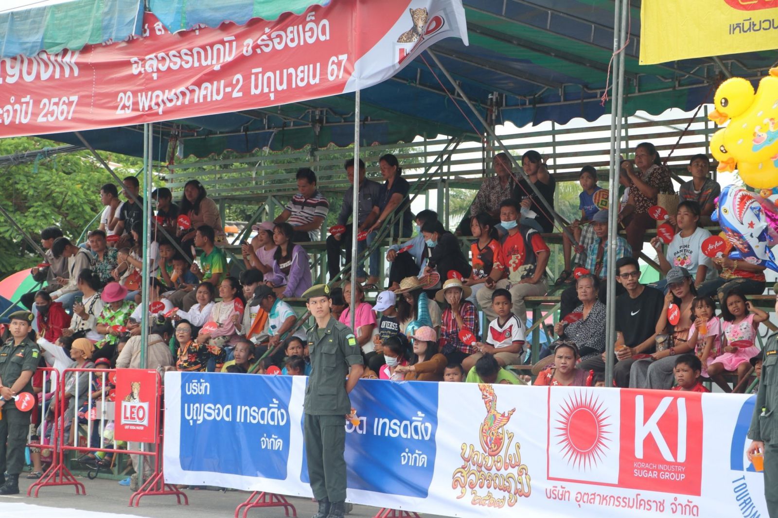 ร้อยเอ็ด-วันเสาร์ที่ 1 เดือนมิถุนายน 2567 เวลา 10.10 น. ณ เวทีกลางลานอนุสาวรีย์พระรัตนวงษา อำเภอสุวรรณภูมิ จังหวัดร้อยเอ็ด นายชูศักดิ์ ราชบุรี รองผู้ว่าราชการจังหวัดร้อยเอ็ด เปิดงานประเพณีบุญบั้งไฟลายศรีภูมิ อำเภอสุวรรณภูมิ ประจำปี 2567 โดยมี นายอำเภอสุวรรณภูมิ นายกองค์การบริหารส่วนจังหวัดร้อยเอ็ด และนายกเทศมนตรีตำบลสุวรรณภูมิ พร้อมด้วย หัวหน้าส่วนราชการ ภาครัฐ ภาคเอกชน และพี่น้องประชาชน เข้าร่วมงาน