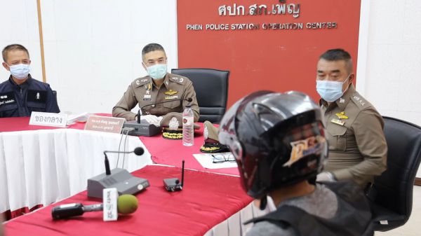 วันที่ 16 พฤษภาคม 2564 เวลา12.15 น. ที่ห้องประชุม ศปก.สภ.เพ็ญ จ.อุดรธานี พล.ต.ต.พิษณุ อุณหเสรี ผบก.ภ.จ.อุดรธานี พ.ต.อ.ชลิต ศรีหานู ผกก.สภ.เพ็ญ ,พ.ต.ท.ดิษฐวัฒน์ ถาวรสินพงค์ รอง ผกก.สอบสวน สภ.เพ็ญ ,พ.ต.ท.ยุทธศิลป์ นามแสง รอง ผกก.ป.สภ.เพ็ญ และพ.ต.ท.ณัฐวัฒน์ วงษ์สนิทธีรา รอง ผกก.สส.สภ.เพ็ญ ร่วมกันสอบปากคำ นายชัยวัฒน์ หรือแม็กกี้ ซุยเสนา อายุ 26 ปี บ้านเลขที่ 209 ม.12 บ้านกิ่ว ม.12 ต.นาพู่ อ.เพ็ญ จ.อุดรธานี ที่ก่อเหตุใช้อาวุธมีดปลายแหลมแทง น.ส.อารีญา บุญมี หรือน้องแบม อายุ 20 ปี ภรรยา ได้เสียชีวิตขณะนำตัวส่งรพ.เพ็ญ ก่อนขี่รถจักรยานยนต์หลบหนี และเข้ามอบตัวกับตำรวจ สภ.เมืองอุดรธานี ช่วงเย็นวานนี้( 15 พ.ค. 64) ด้วยอาการเมาเหล้าพูดจาไม่รู้เรื่อง ก่อนควบคุมตัวมาดำเนินคดีที่ สภ.เพ็ญ ในข้อหา “ฆ่าผู้อื่นโดยเจตนา”