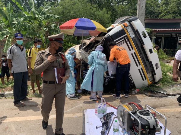 พัทลุง-รถ6ล้อโม่ปูน หลุดโค้งชนเสาไฟฟ้า คนขับเจ็บสาหัสติดภายใน ใช้เวลาร่วม 2 ชม.กว่านำคนเจ็บออกจากซากรถได้