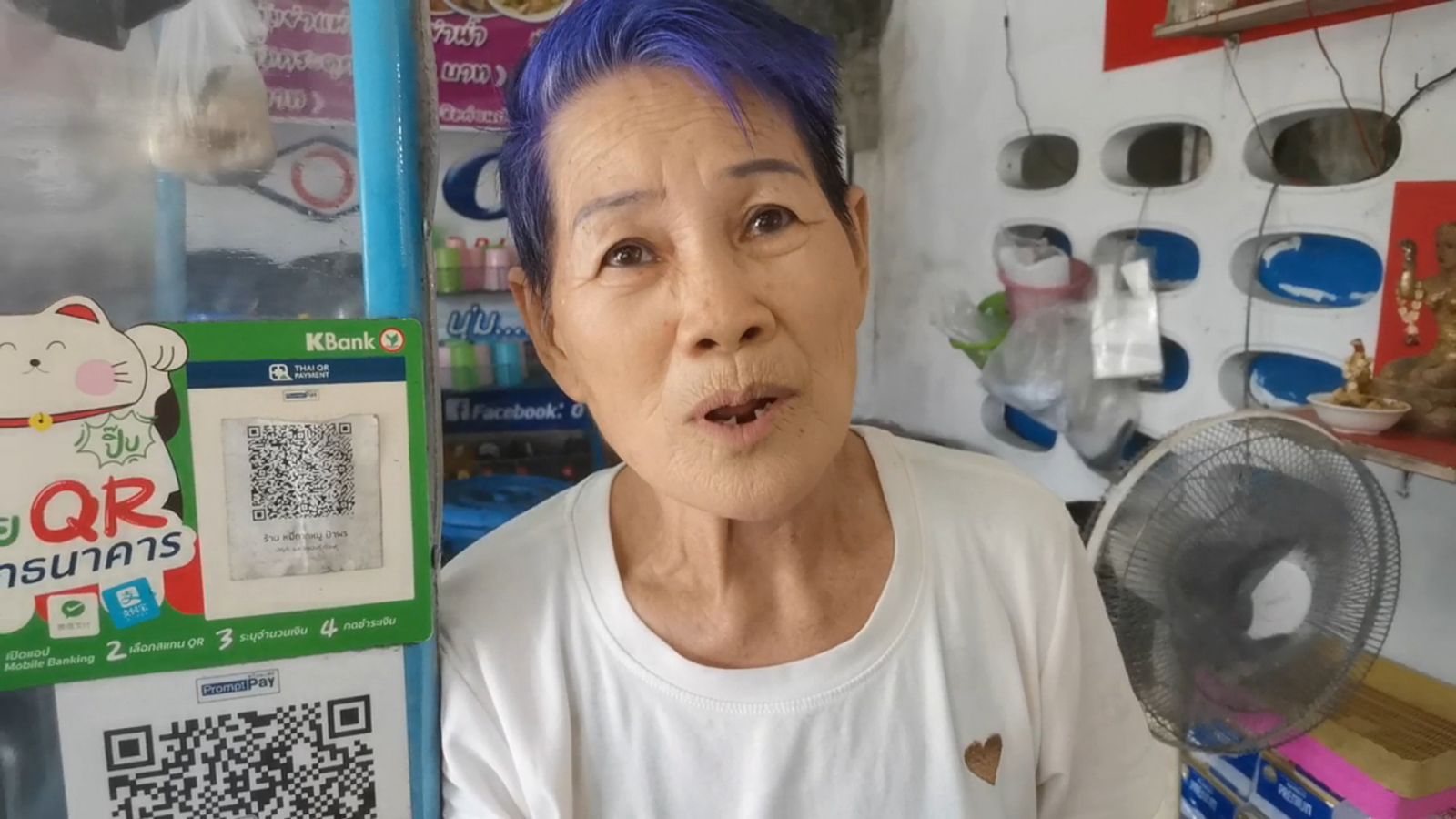 คุณป้าพร เจ้าของร้านที่มีเอกลักษณ์เฉพาะตัวที่สีผมเป็นสีม่วง ได้พาผู้สื่อข่าวไปดูการเจียวกากหมูที่ต้องใช้หมูสดวันละ20 กิโลกรัม มาเจียวสดๆเป็นกากหมูที่ใช้ใส่ในหมี่ ซึ่งมีวิธีการเฉพาะตัวที่ทำให้กากหมูกรอบ มัน อร่อย สำหรับหมี่กากหมูนั้นตนเองคิดสูตรขึ้นมาเองขายมาตั้งแต่ปี2530 ในราคาถ้วยละ 3 บาทเท่านั้น ปัจจุบันราคาอยู่ที่ถ้วยละ ธรรมดา 45 บาท พิเศษ 50 เด็ก 35บาท เปิดขายทุกวันเวลา 09.00 น.-16.00 น. ปิดทุกวันจันทร์