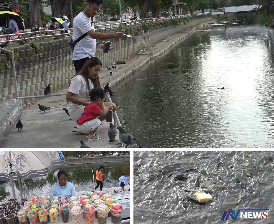 ผู้ที่มาให้อาหารปลาส่วนใหญ่จะเป็นชาวสงขลาพาครอบครัวพ่อแม่ลูก มาให้อาหารปลาในช่วงเย็นเกือบทุกวัน เพราะปลามันโดนขังอยู่ข้างในสระบัว มันไม่สามารถออกมาหากินได้ เหมือนกับนกพิราบ ที่สามารถโบยบินไปได้ทุกที่ตลอด เวลา จึงมีความตั้งใจ มาให้อาหารปลา ในช่วงเย็นอย่างต่อเนื่อง บางคนก็นำขนมปัง มาให้ เนื่องจากกลัวว่า หากให้อาหารเม็ดมากๆ กลัวน้ำจะเสีย