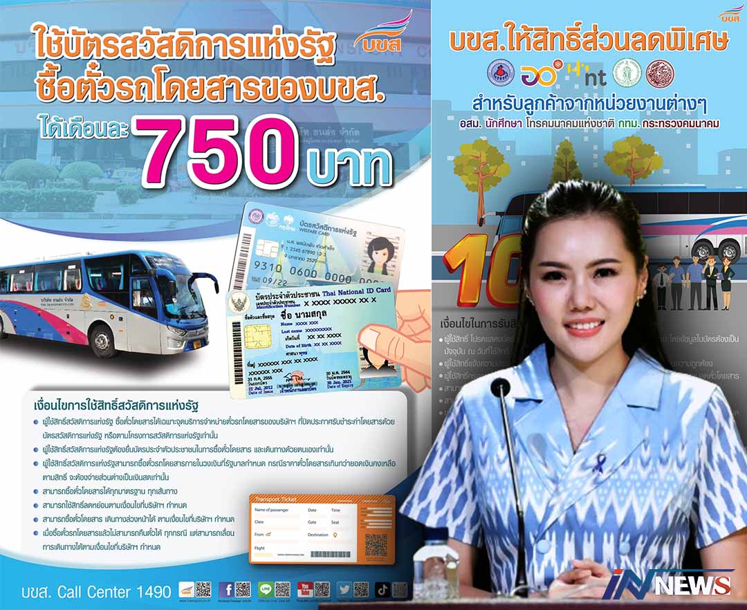วันที่ 15 มิ.ย. 67 น.ส.เกณิกา อุ่นจิตร์ รองโฆษกประจำสำนักนายกรัฐมนตรี กล่าวว่า นายสุริยะ จึงรุ่งเรืองกิจ รองนายกรัฐมนตรีและรัฐมนตรีว่าการกระทรวงคมนาคม ต้องการอำนวยความสะดวกให้กับประชาชนในการใช้บริการรถโดยสารของ บขส. โดยประชาชนสามารถใช้สิทธิ์ซื้อตั๋วโดยสารของ บขส. ทัังนี้ ผู้โดยสารสามารถใช้บัตรสวัสดิการแห่งรัฐ ตามโครงการของรัฐบาลที่ให้ประชาชนสามารถจ่ายค่าเดินทางผ่านระบบขนส่งสาธารณะ 750 บาทต่อคนต่อเดือน โดยสามารถนำบัตรสวัสดิการแห่งรัฐซื้อตั๋วโดยสารได้ที่ช่องจำหน่ายตั๋วของ บขส. ทั่วประเทศ