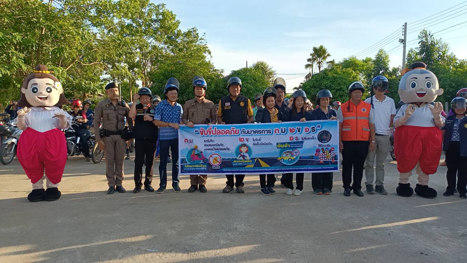 ปราจีนบุรี- ระวังภัย!อปท.-เอกชนร่วมแจกหมวกกันน็อคชาวบ้านไม่อั้นโครงการป้องกันและลดอุบัติเหตุทางถนนขับขี่ปลอดภัยสมบัตินิรภัย 100% ประจำปี 2567