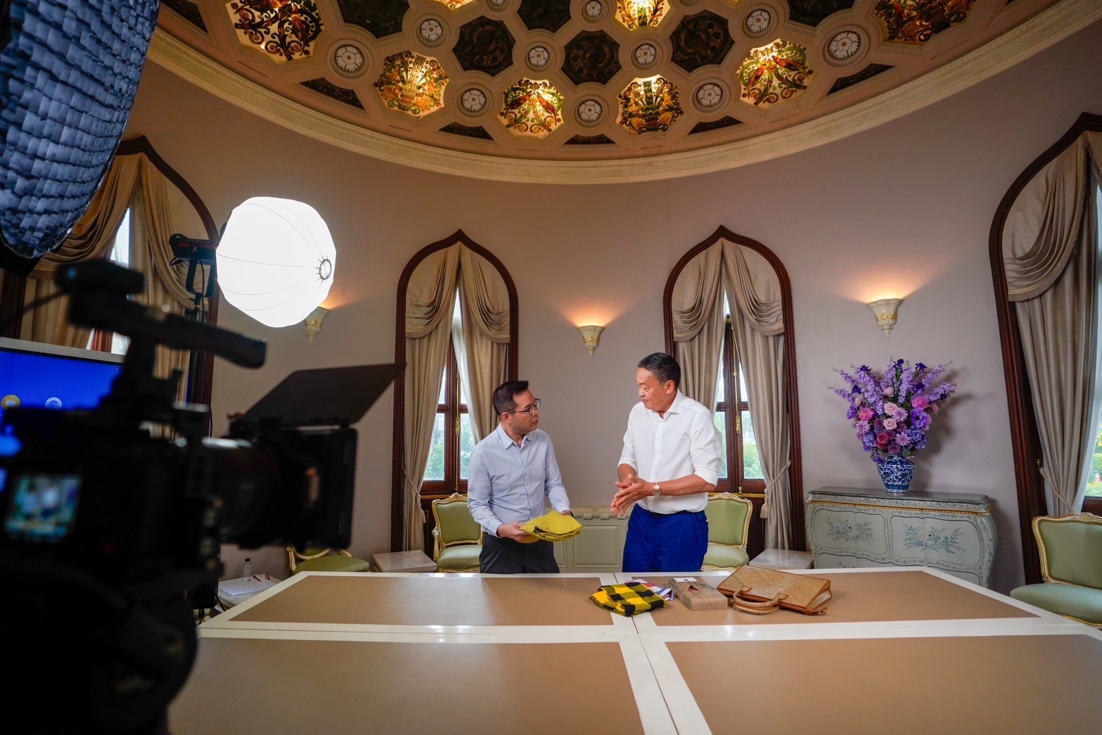 นายกฯ กล่าวย้ำว่า ทั้งหมดเป็นผ้าที่ชาวบ้านให้ ไม่ได้ไปแอบซื้อ พอกลับมาแต่ละที่ ก็จะเลือกเก็บไว้ให้มีความหลากหลาย บางชิ้นก็ซ้ำเพราะว่าหมู่บ้านเดียวกันสีคล้าย ๆ กันมาก ก็จะเลือกสีเด่น ๆ ออกมา นำไปใช้ นำไปโชว์ให้ต่างประเทศเห็นถึงความสวยงาม ผลักดันสินค้าจากฝีมือของชาวบ้านให้ต่างชาติได้เห็น