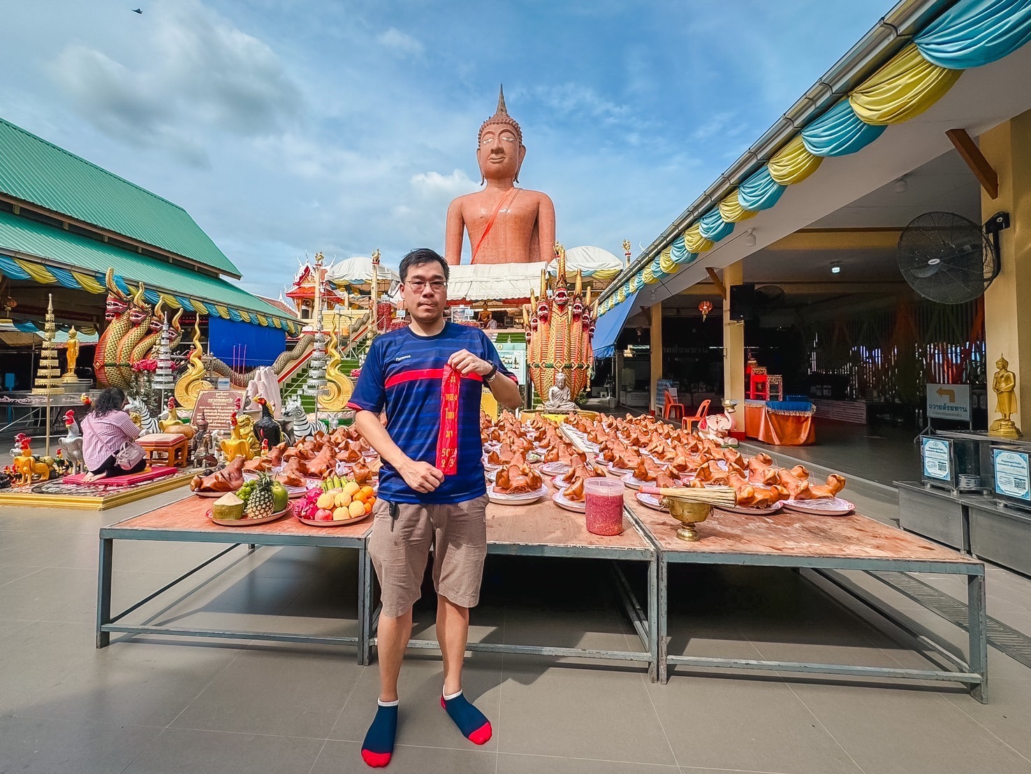นครปฐม-หนุ่มพนักงานบริษัทพร้อมลูก-เมียนำหัวหมู 99 หัวมาแก่บนหลวงพ่อสมหวังหลังขอให้ได้เมียและลูกเพราะตัวเองโสด4ปี
